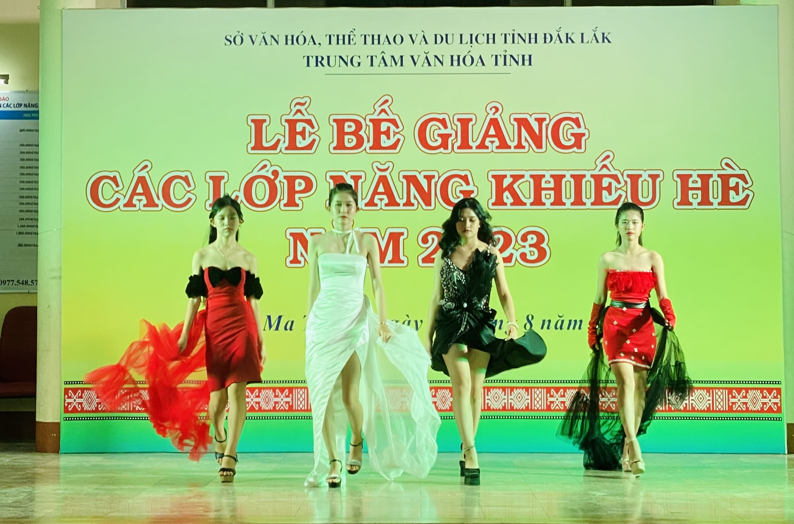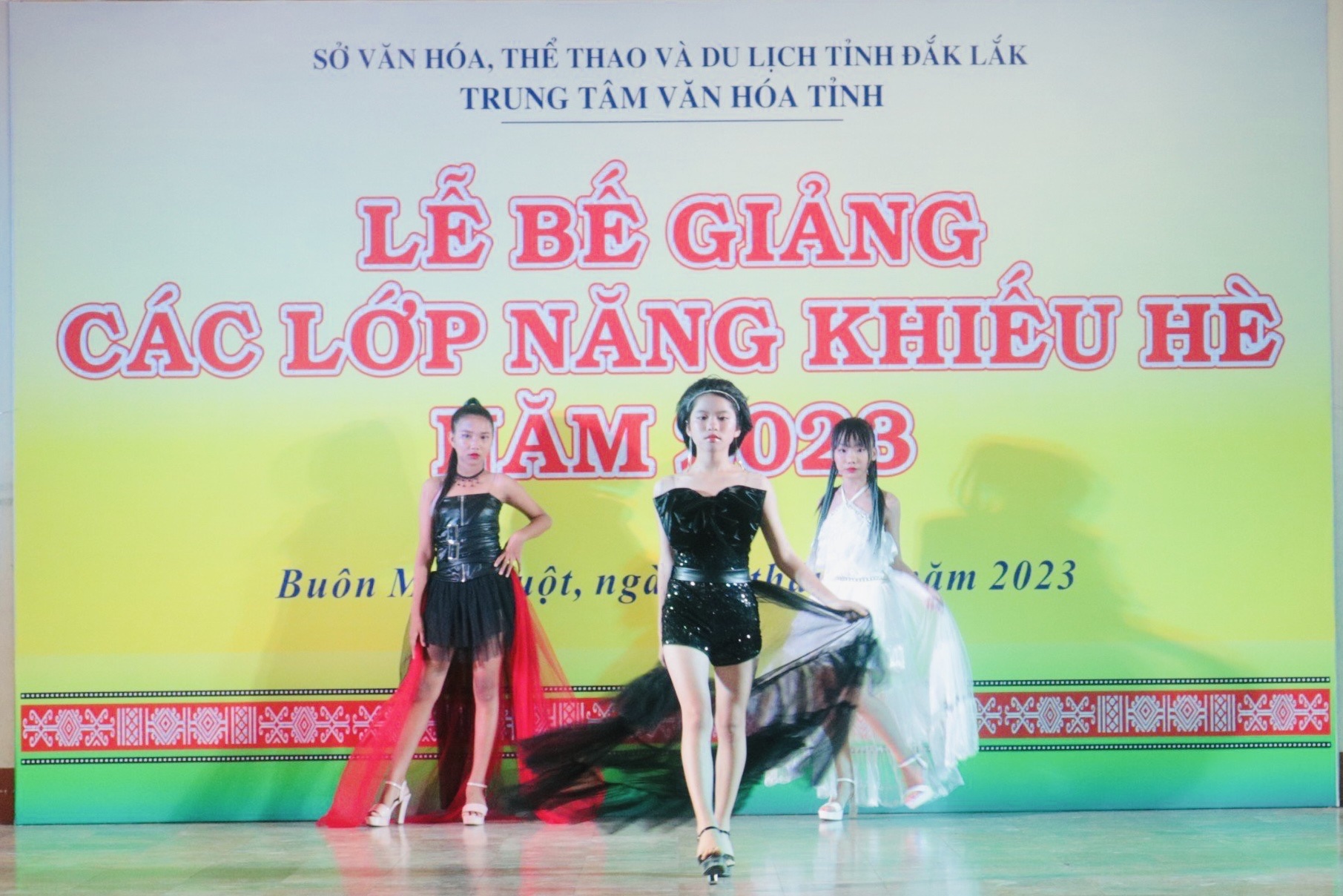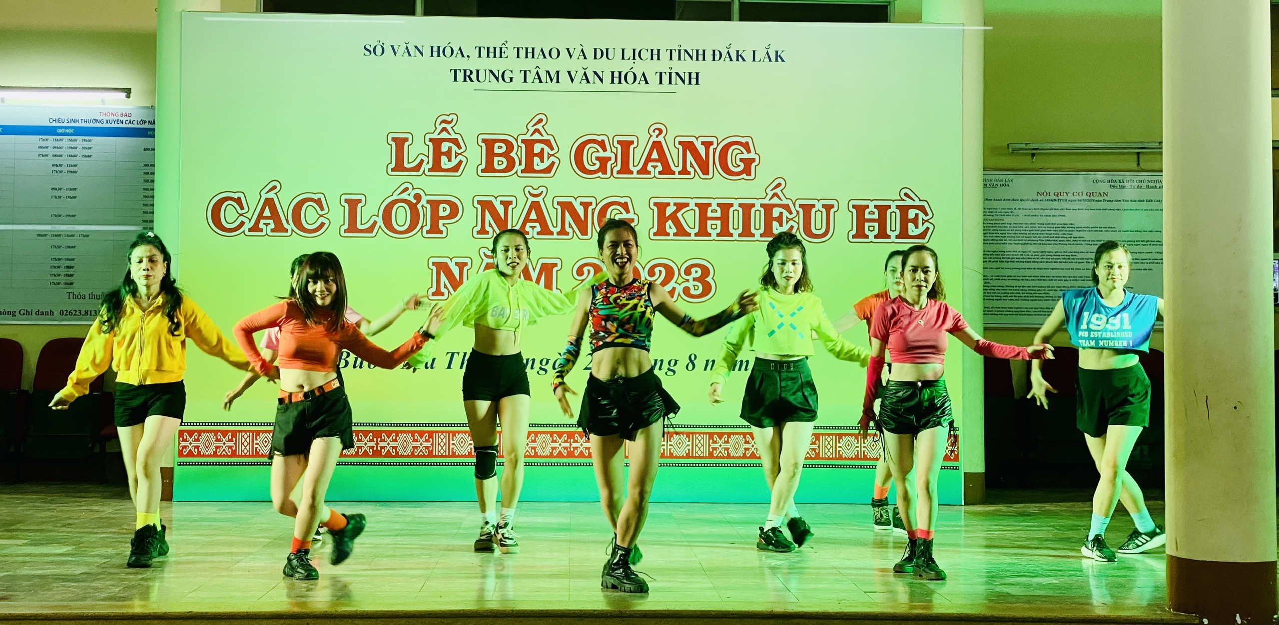 Phát biểu Bế giảng, bà Đào Thị Thu Hiền, Phó Giám đốc Trung tâm Văn hóa tỉnh ghi nhận và biểu dương những kết quả mà các lớp đã đạt được trong thời gian qua, đã tạo được môi trường học tập, rèn luyện năng khiếu bổ ích, ý nghĩa cho Học viên vào dịp hè. Đồng thời mong muốn, trong thời gian tới, đội ngũ Giáo viên, Huấn luyện viên và toàn thể học viên sẽ tiếp tục phát huy kết quả đã đạt được, hưởng ứng và tham gia biểu diễn nhiều chương trình văn hóa, thể thao phục vụ nhiệm vụ chính trị tại Trung tâm Văn hóa tỉnh cũng như các hoạt động, sự kiện của tỉnh khi được đề nghị hỗ trợ; hoàn thành những nhiệm vụ, mục tiêu đã đặt ra: Đổi mới, sáng tạo trong phương pháp giảng dạy cũng như cách thức hoạt động; ứng dụng công nghệ thông tin vào quảng cáo, chiêu sinh Học viên mới…