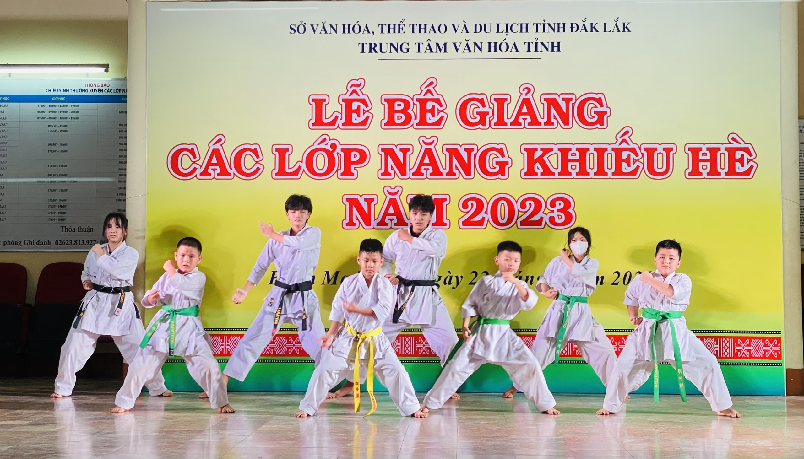 Hoạt động Lớp Năng khiếu hè năm 2023 được duy trì ổn định, hầu hết các lớp đảm bảo chất lượng, nội dung, thời gian học tập, đã tập hợp được nhiều người có cùng nhu cầu, sở thích đến với Trung tâm Văn hóa tỉnh để tham gia các lớp năng khiếu. Trong 3 tháng hè, Trung tâm Văn hóa tỉnh đã mở được 14 bộ môn năng khiếu, chiêu sinh khoảng 500 lượt Học viên (cao hơn số lượng học viên 05 tháng đầu năm 2023: 82 lượt, tương đương mỗi tháng tăng gần 40%). Ngoài ra, các Lớp năng khiếu còn có Chương trình dạy miễn phí hoặc hỗ trợ một phần học phí cho Học viên nghèo, Học viên có anh/chị/em học chung, là Hội viên sinh hoạt tại các lớp (khoảng 100 lượt học viên được học miễn phí hoặc hỗ trợ học phí ở các bộ môn: Karatedo, Vovinam, Múa thiếu nhi…).