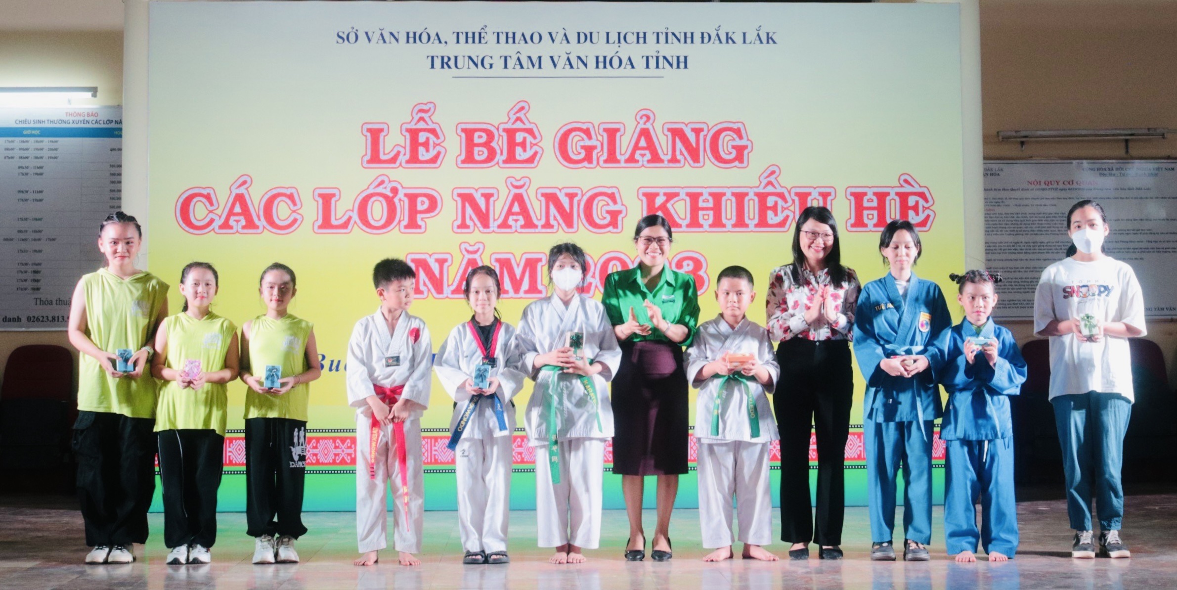 Để ghi nhận thành tích học tập xuất sắc của Học viên các Lớp năng khiếu hè năm 2023, Trung tâm Văn hóa tỉnh đã trao tặng 10 suất quà cho Học viên. Qua đó, góp phần động viên các Học viên tiếp tục học tập, rèn luyện đạt kết quà tốt; gắn bó với các lớp năng khiếu được mở tại Trung tâm Văn hóa tỉnh./.