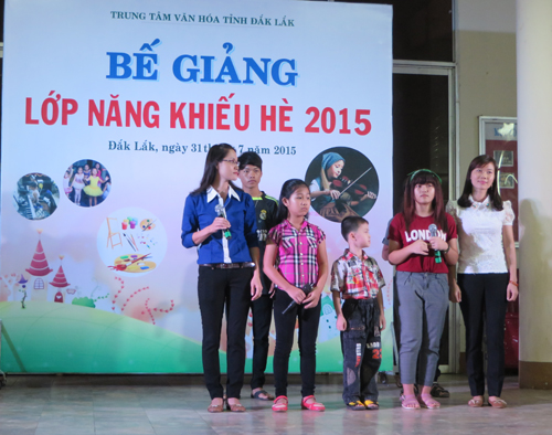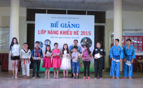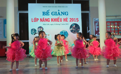 Trung tâm Văn hóa tỉnh vừa tổ chức Bế giảng lớp năng khiếu hè 2015. Tại Lễ bế giảng các em học viên đã báo cáo kết quả học tập, sinh hoạt trong vòng 2 tháng hè qua. Theo đó, hè 2015 Trung tâm đã thu hút được trên 200 em học sinh đủ mọi lứa tuổi đến tham gia sinh hoạt và học tập các lớp năng khiếu, như: Vovinam, Thiếu lâm tự, Tewondo, Kratedo, Múa, Organ, Thanh nhạc, Guitar, Violon, Piano, Mỹ thuật và ôn thi ôn thi vào các trường cao đẳng, đại học…
