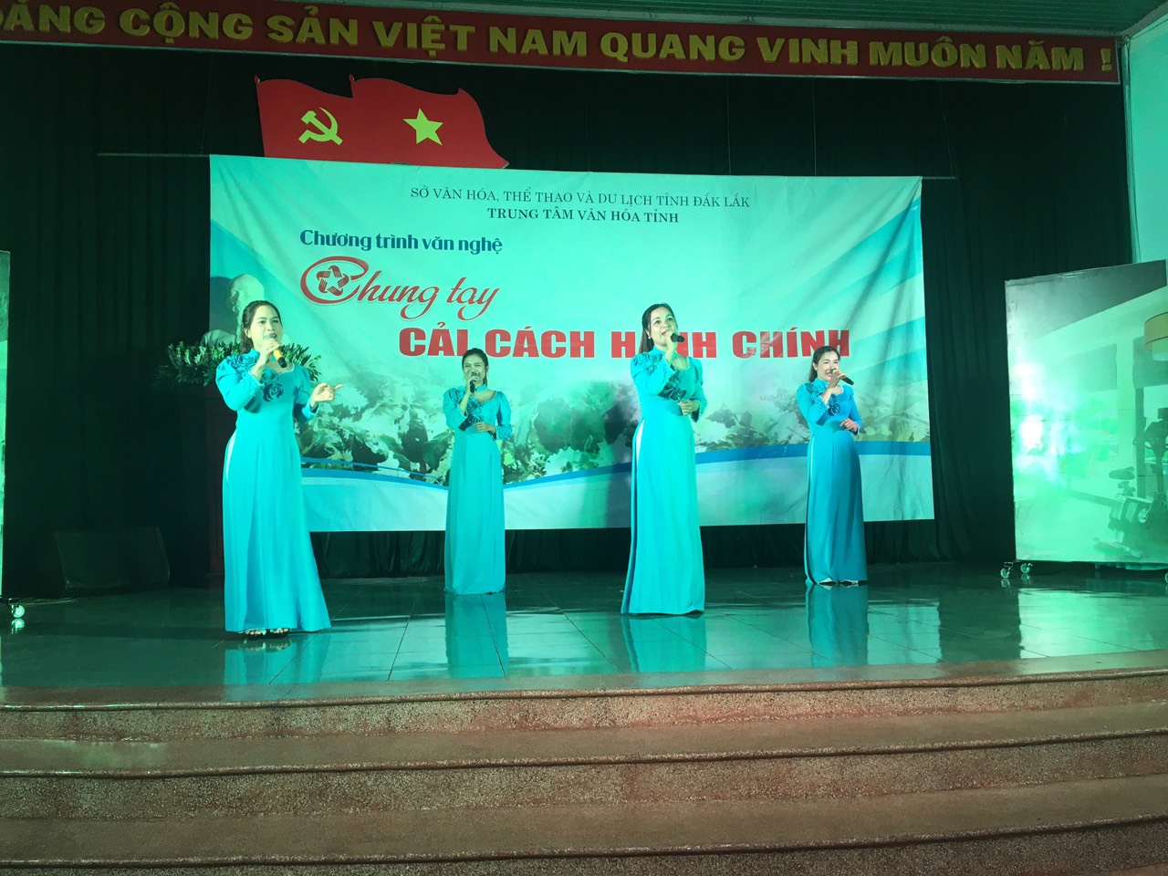 Từ ngày 25/10 đến 17/11/2023, Đội Tuyên truyền lưu động thuộc Trung tâm Văn hóa tỉnh biểu diễn Chương trình tuyên truyền Cải cách hành chính tỉnh Đắk Lắk năm 2023, với chủ đề “Nâng cao hiệu qủa hoạt động công vụ. Đổi mới, sáng tạo trong thực hiện cải cách hành chính, đẩy mạnh cải thiện môi