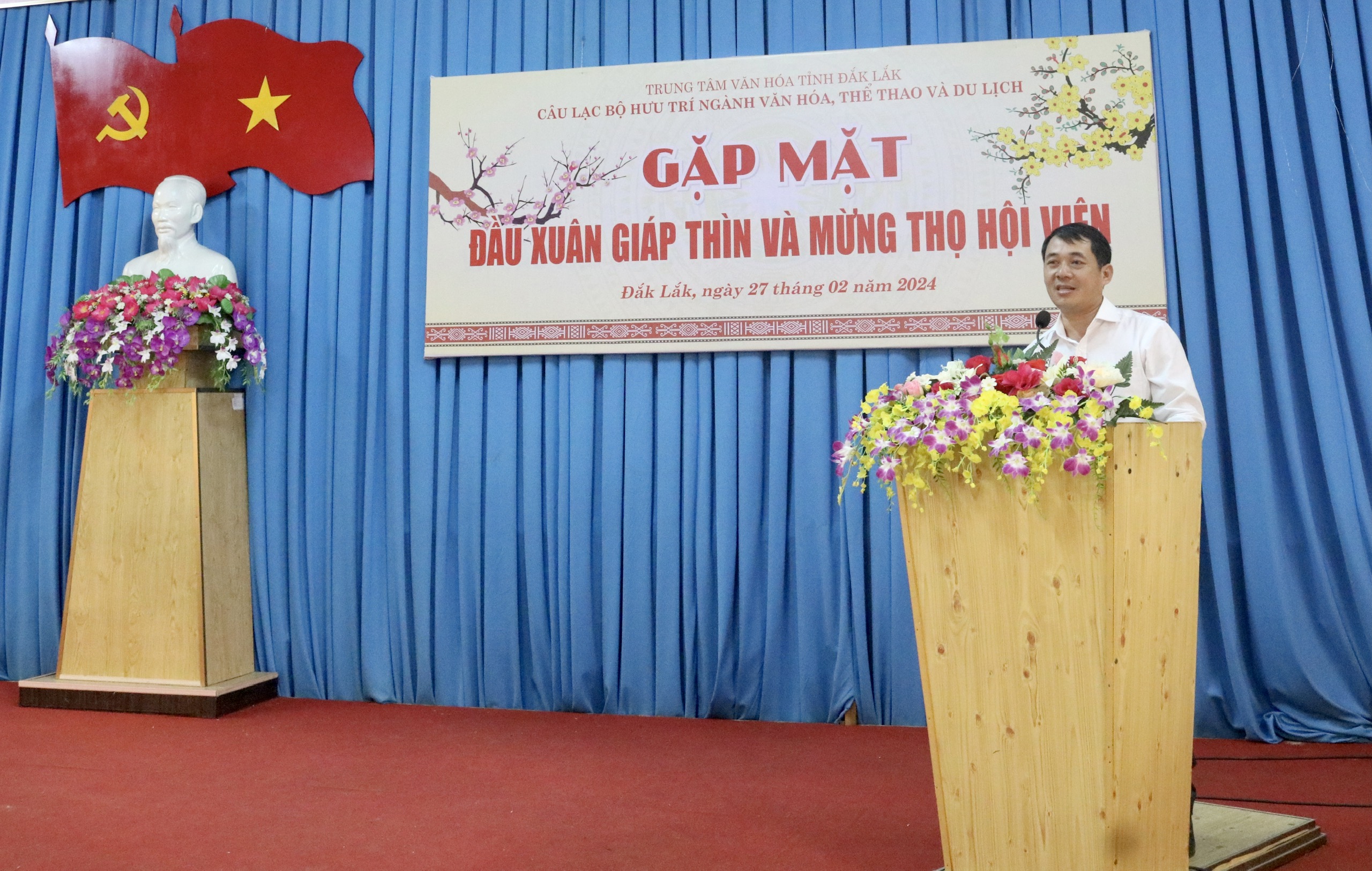 Sáng ngày 27/02/2024, Câu lạc bộ Hưu trí ngành Văn hóa, Thể thao và Du lịch tỉnh Đắk Lắk thuộc Trung tâm Văn hóa tỉnh gặp mặt đầu xuân Giáp Thìn và mừng Thọ Hội viên. Tham dự chương trình có ông Lại Đức Đại, Phó Giám đốc Sở Văn hóa, Thể thao và Du lịch; bà Trương Thị Ánh, Giám đốc Trung tâm Văn hóa tỉnh cùng các thành viên trong Ban Giám đốc của Trung tâm.