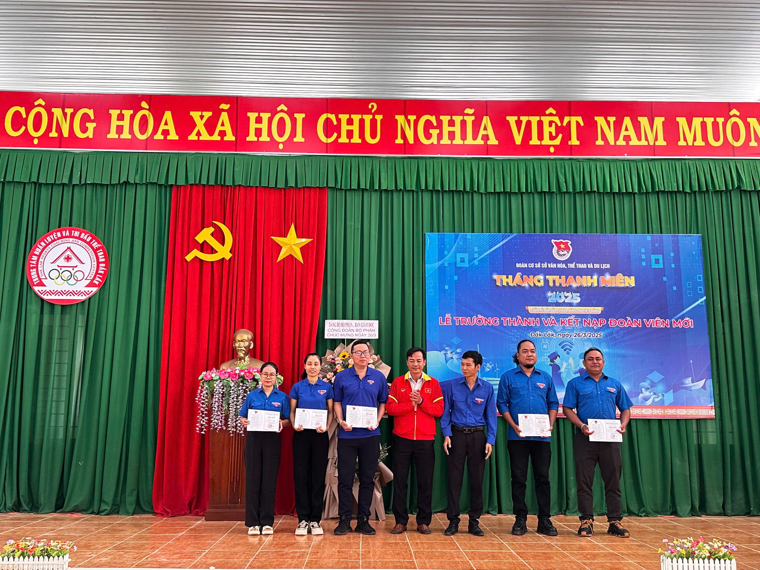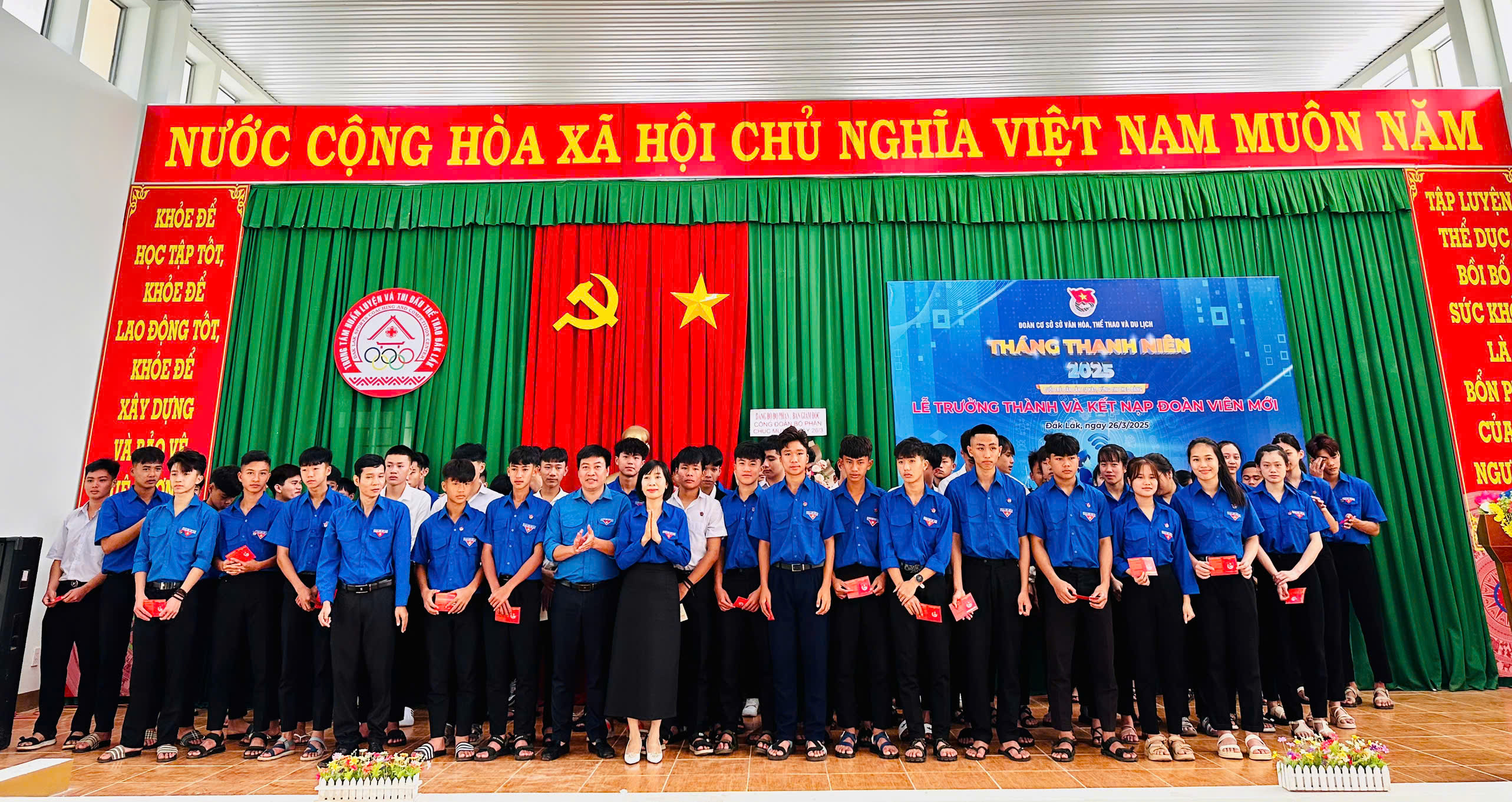Lễ kết nạp Đoàn viên mới và Lễ trưởng thành Đoàn đã được tổ chức trang trọng. 70 thanh niên của Trung tâm Huấn luyện và Thi đấu thể thao đủ điều kiện để đứng vào hàng ngũ của Đoàn đã được các đồng chí trong Ban Chấp hành Đoàn cơ sở trao Thẻ Đoàn viên và huy hiệu Đoàn. Đây là những Đoàn viên trẻ sẽ tích cực tham gia các hoạt động Đoàn và phong trào thanh niên, cùng nhau đoàn kết xây dựng tổ chức Đoàn ngày càng phát triển và vững mạnh.