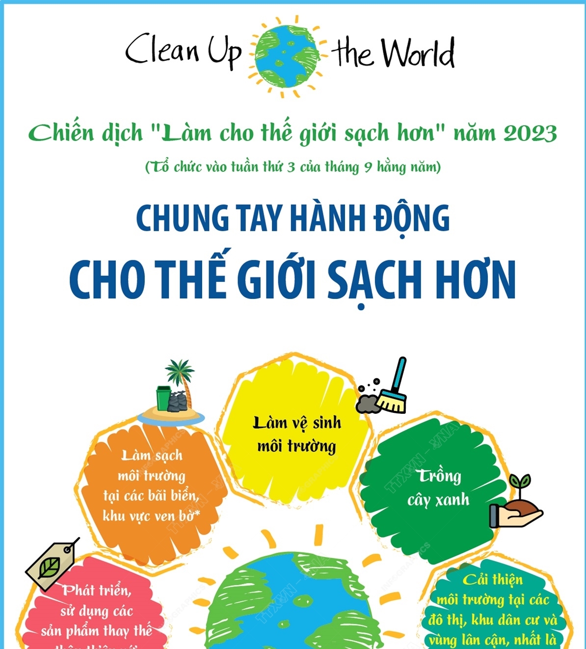 Chiến dịch làm cho thế giới sạch hơn năm 2023 có chủ đề “Chung tay hành động cho thế giới sạch hơn”, nhằm tiếp tục góp phần nâng cao nhận thức cộng đồng về công tác bảo vệ môi trường, khuyến khích các hoạt động, phong trào cộng đồng vì môi trường, hướng tới nền kinh tế xanh, kinh tế tuần hoàn và phát triển bền vững.