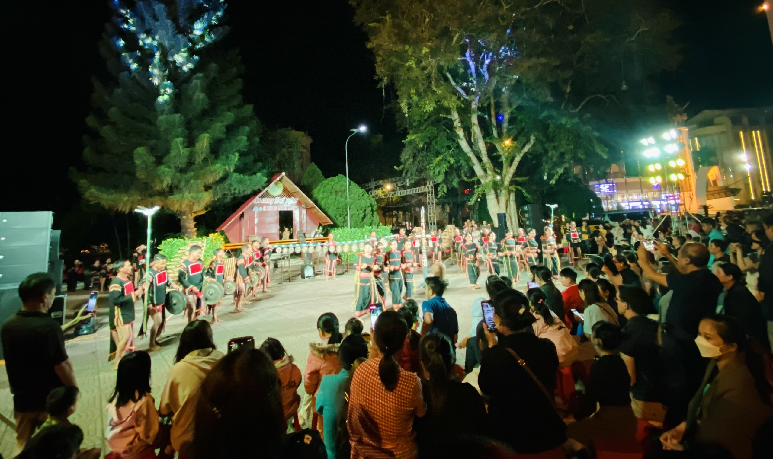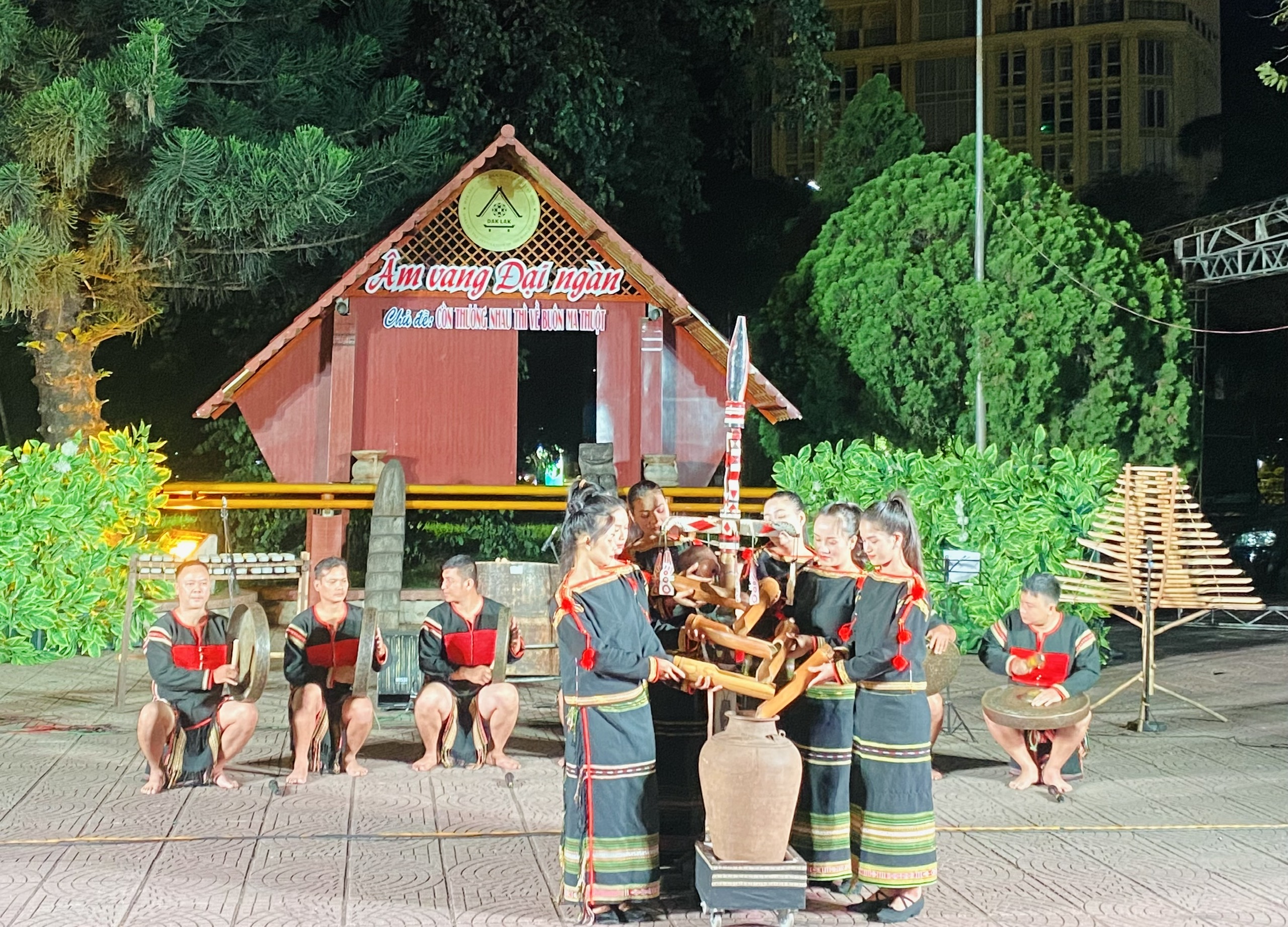 Chương trình biểu diễn văn hóa Cồng chiêng “Âm vang đại ngàn” phục vụ Nhân dân và du khách được tổ chức định kỳ 01 tháng 02 lần, vào lúc 19h30’ tối thứ Bảy tuần thứ 2 và tuần cuối hàng tháng. Chương trình là sự kết hợp giữa biểu diễn Cồng chiêng, các tiết mục dân ca, dân vũ, hòa tấu nhạc cụ, ca khúc dân gian... góp phần bảo tồn và quảng bá Không gian Văn hóa Cồng chiêng Tây Nguyên, đáp ứng nhu cầu hưởng thụ văn hóa của Nhân dân và du khách./.