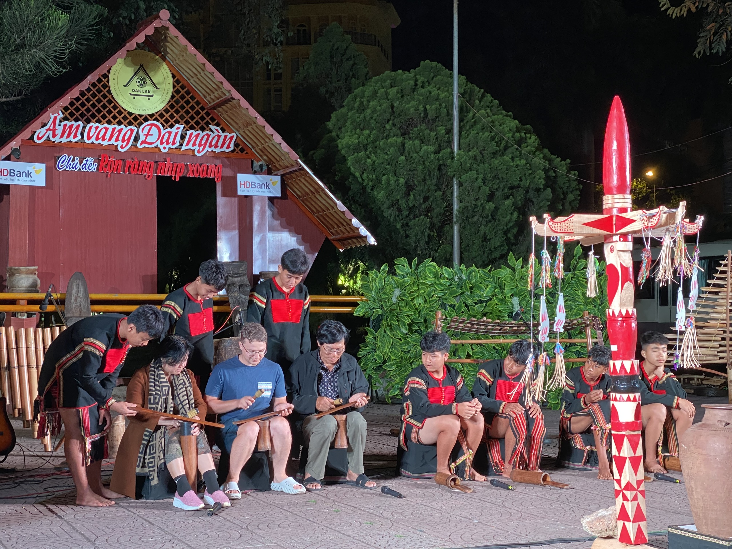 Chương trình biểu diễn Văn hóa Cồng chiêng “Âm vang đại ngàn” phục vụ Nhân dân và du khách được tổ chức định kỳ 01 tháng 02 lần, vào lúc 19h30’ tối thứ Bảy tuần thứ 2 và tuần cuối hàng tháng. Chương trình là sự kết hợp giữa biểu diễn Cồng chiêng, các tiết mục dân ca, dân vũ, hòa tấu nhạc cụ, ca khúc dân gian... góp phần bảo tồn và quảng bá Không gian Văn hóa Cồng chiêng Tây Nguyên, tạo nên điểm văn hóa - du lịch cuối tuần thu hút và đáp ứng nhu cầu hưởng thụ văn hóa của Nhân dân và du khách./.
