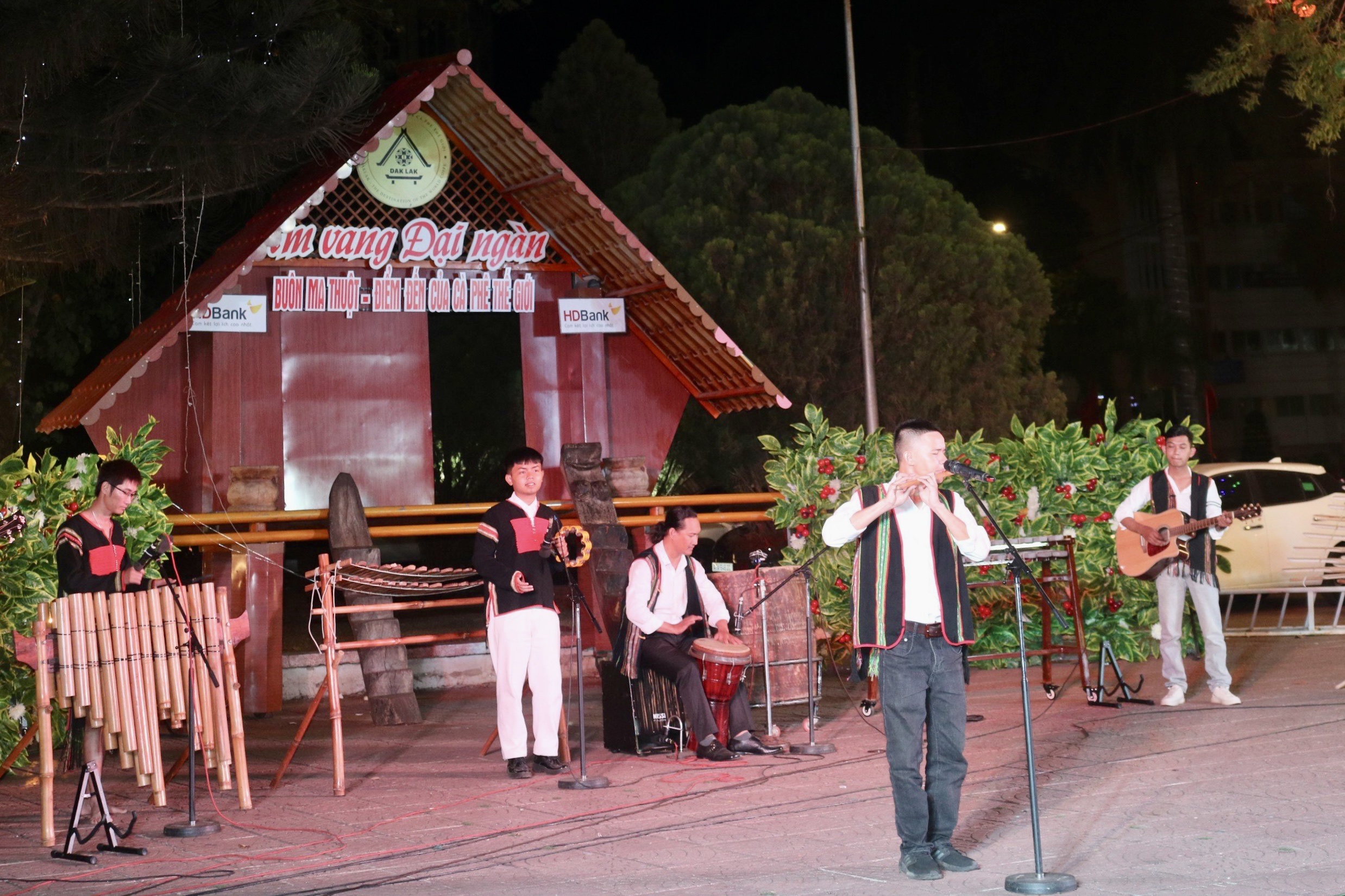 Tại chương trình, các tiết mục ngợi ca tình yêu quê hương, sự gắn kết cộng đồng, mang đậm bản sắc văn hóa Tây Nguyên đã được nghệ sĩ, diễn viên của Đoàn Ca múa Dân tộc tỉnh và CLB Nghệ thuật đường phố biểu diễn. Một số tiết mục như hòa tấu nhạc cụ “Bóng cây Kơ Nia”, tốp ca “Mời bạn đến Ban Mê”, diễn tấu đàn đá “Koong Tua”, đơn ca “Ly cà phê Ban Mê”, song ca “Giọt đắng Ban Mê”, “Điểm đến cà phê thế giới”…Tham gia chương trình, khán giả cũng được giao lưu, giới thiệu và tìm hiểu về Lễ hội Cà phê Buôn Ma Thuột và hòa cùng vòng xoang trên giai điệu bài hát “Còn thương nhau thì về Buôn Ma Thuột”.