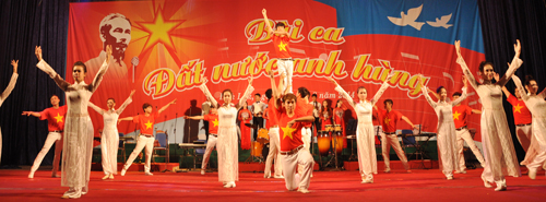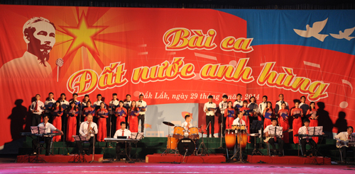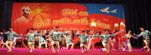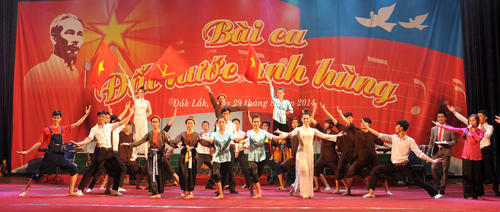 Tối 29/8, tại Trung tâm Văn hóa tỉnh đã diễn ra Chương trình Ca múa nhạc hoành tráng với chủ đề: “Bài ca đất nước anh hùng” chào mừng kỷ niệm 69 năm Cách mạng Tháng Tám và Quốc khánh nước Cộng hòa xã hội chủ nghĩa Việt Nam (2/9/1945 – 2/9/2014).