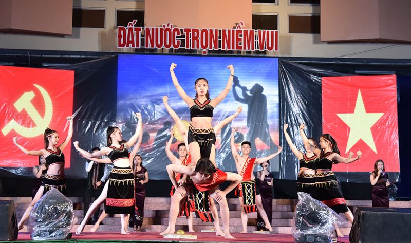 Xuyên suốt chương trình là những bài ca điệu múa ca ngợi Đảng quang vinh, Bác Hồ vĩ đại, Quân đội nhân dân Việt Nam Anh hùng, dân tộc Việt Nam Anh hùng, những chiến công hiển hách của nhân dân Việt Nam trong sự nghiệp bảo vệ và xây dựng Tổ quốc, như: Đất nước trọn niềm vui, Bài ca thống nhất, Huyền thoại Trường Sơn, Nhật lệnh gọi bình minh, Tiếng hát từ thành phố mang tên Người, Âm vang hồn chiêng, Hát cho Cao Nguyên ngày mai, Múa Hương sen, Nồng nàn Cao Nguyên, Tản mạn Cao Nguyên, Gọi mãi Cao Nguyên…