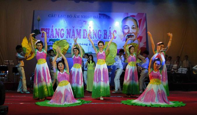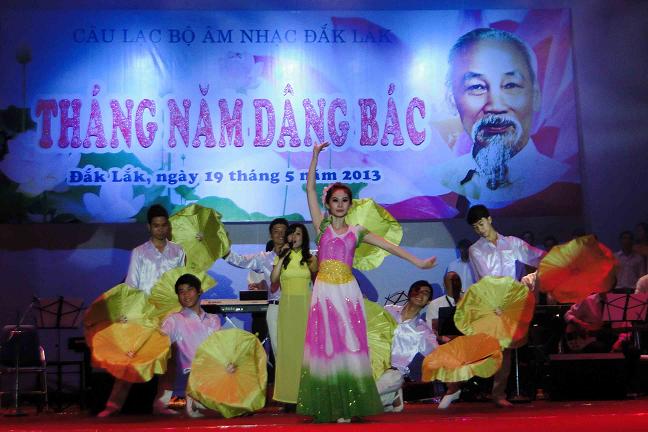 Tối 19/5, Trung tâm Văn hóa tỉnh đã tổ chức Chương trình Ca múa nhạc với chủ đề “Tháng năm dâng Bác” chào mừng kỷ niệm 123 năm Ngày sinh Chủ tịch Hồ Chí Minh (19/5/1890 – 19/5/2013). Chương trình doCâu lạc bộ Âm nhạc Đắk Lắk dàn dựng và thực hiện. Đây là chương trình ra mắt của Câu lạc bộ.