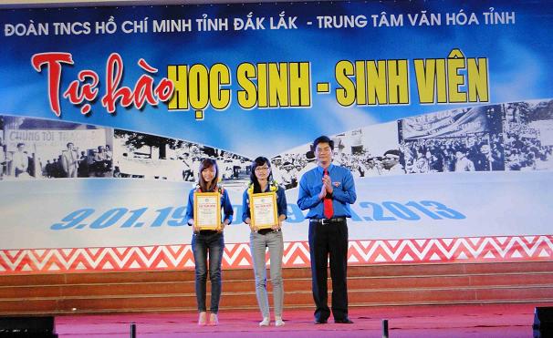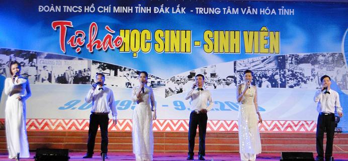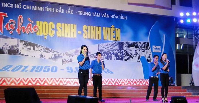 Chào mừng kỷ niệm 63 năm Ngày truyền thống Học sinh - Sinh viên Việt Nam và Hội Sinh viên Việt Nam (09/01/1950 - 09/01/2013), tối ngày 8/1/2012, tại Trung tâm Văn hóa tỉnh Đắk Lắk, Tỉnh Đoàn Đắk Lắk phối hợp với Trung tâm Văn hóa tỉnh tổ chức chương trình giao lưu nghệ thuật “Tự hào học sinh - sinh viên” và Tuyên dương học sinh - sinh viên tiêu biểu năm học 2012 - 2013. Tới dự có đồng Chí Mai Hoan Niê Kđăm - Tỉnh ủy viên, Phó Chủ tịch UBND tỉnh; lãnh đạo các sở, ngành; lãnh đạo Tỉnh đoàn thanh niên cùng 2.000 đoàn viên thanh niên, học sinh, sinh viên đã về tham dự.
