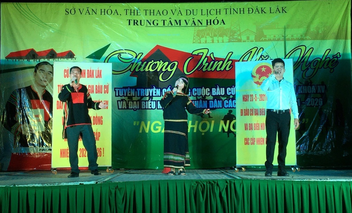 Từ ngày 22/3/2021 đến ngày 09/4/2021, Đội Tuyên truyền lưu động thuộc Trung tâm Văn hóa tỉnh tổ chức biểu diễn chương trình văn nghệ tuyên truyền cổ động cuộc bầu cử Đại biểu Quốc hội khóa XV và đại biểu HĐND các cấp nhiệm kỳ 2021-2026 với chủ đề “Ngày hội non sông” phục vụ Nhân dân các dân tộc tại các xã thuộc huyện Ea Súp và Ea Kar.