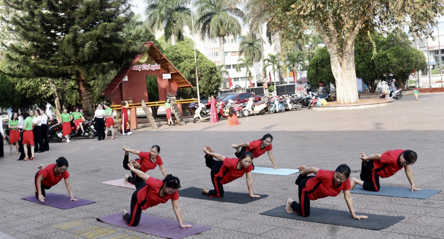 Chương trình gồm 14 tiết mục như đồng diễn “Mùa xuân ơi”, “Nối vòng tay lớn”; múa “Đảng đã cho ta mùa xuân”, “Làng lúa Làng hoa”; yoga “Thái Bình quê hương tôi”; khiêu vũ - cha cha cha “Vó ngựa trên đồi cỏ non”…