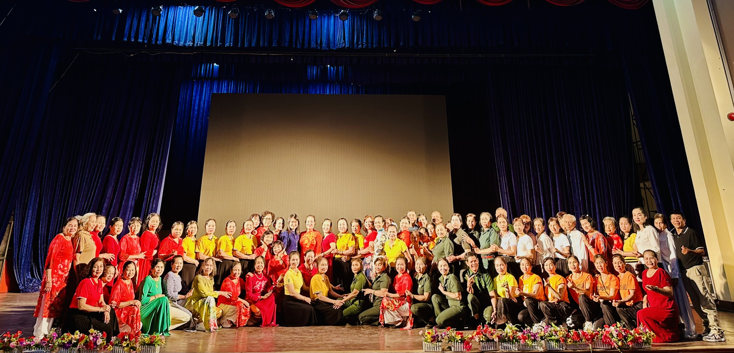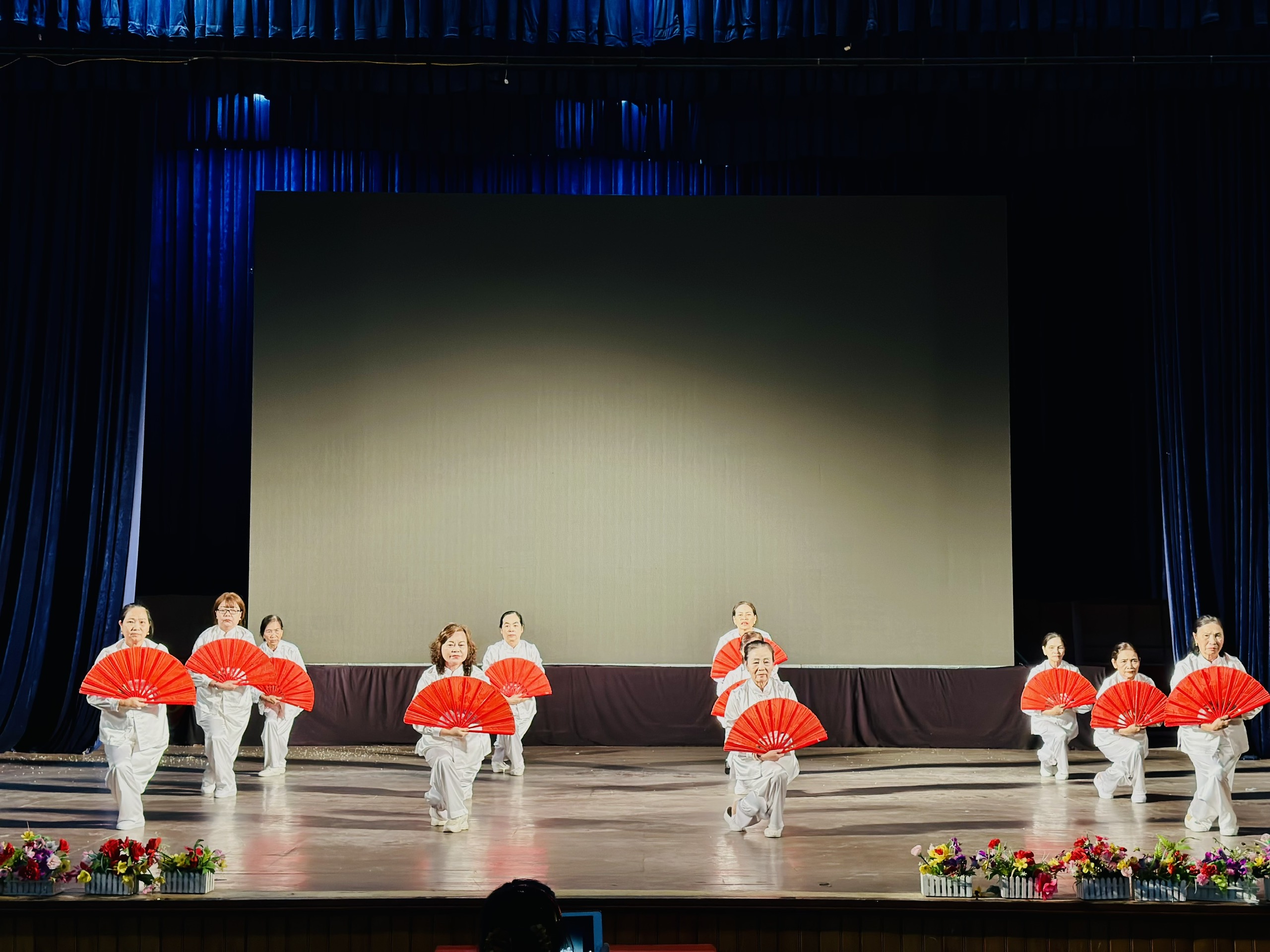 Sau màn đồng diễn, Hội viên đã giao lưu văn nghệ với nhiều tiết mục đặc sắc như Nhảy dân vũ “Vấn vương chợ tình”, quạt 27 thức “Biển hát chiều nay”, múa “Chuyện tình thảo nguyên”…