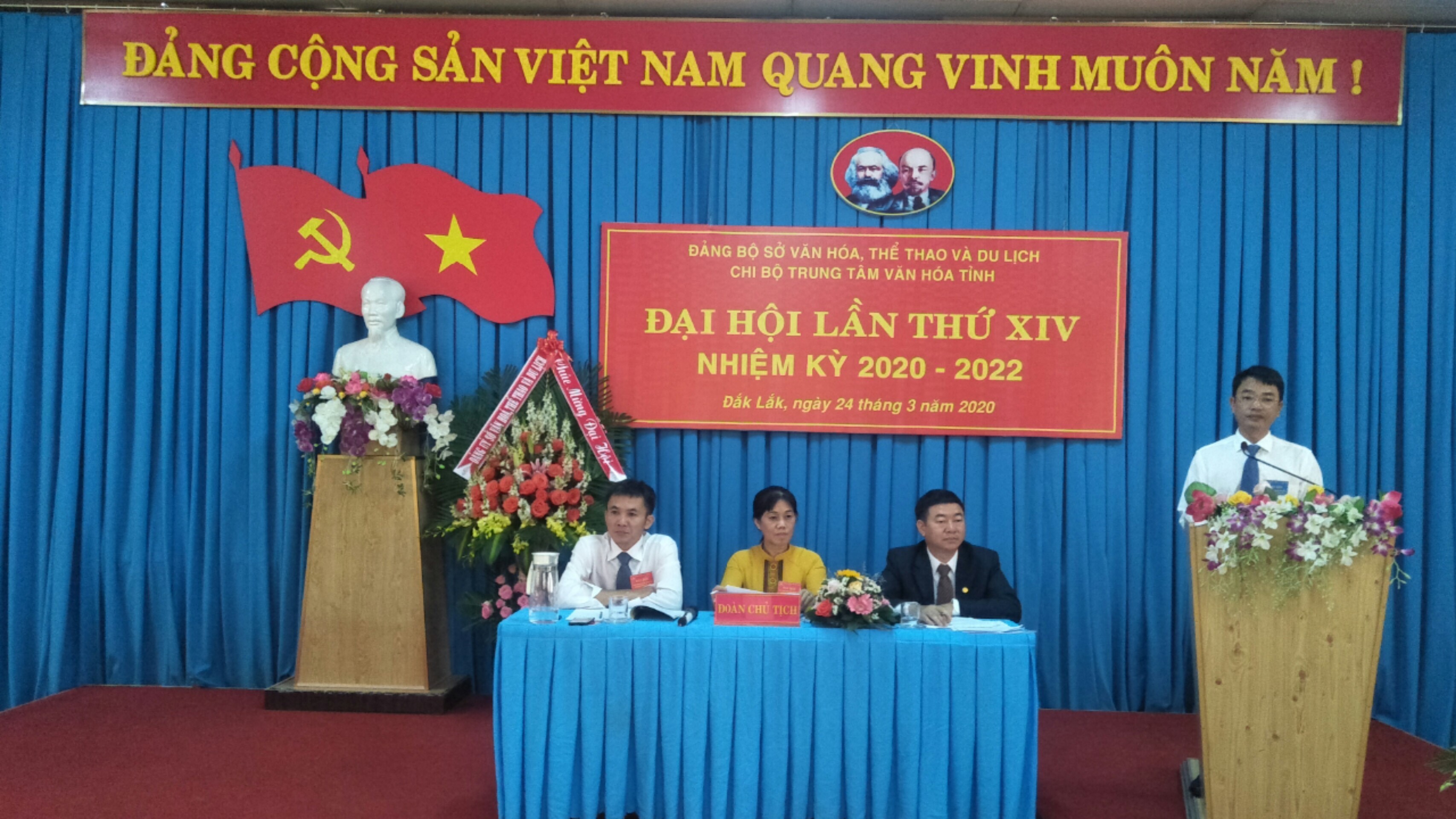 Đại hội Chi bộ Trung tâm Văn hóa tỉnh Đắk Lắk nhiệm kỳ 2020 – 2022 đã diễn ra vào ngày 24/3/2020, đồng chí Đặng Gia Duẩn, Phó Bí thư Đảng ủy, Phó Giám đốc Sở VHTTDL dự và chỉ đạo Đại hội; các đ/c đại diện các chi bộ trực thuộc Đảng bộ Sở VHTTDL cùng toàn thể đảng viên trong Chi bộ đã về dự.