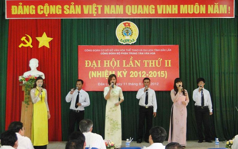 Công đoàn bộ phận Trung tâm Văn hóa tỉnh vừa tổ chức Đại hội nhiệm kỳ 2012 -2015. Đến dự có các đồng chí lãnh đạo Công đoàn cơ sở Sở văn hóa, Thể thao và Du lịch, đại diện các công đoàn bộ phận trực thuộc sở, cùng đông đảo đoàn viên công đoàn (ĐVCĐ) đơn vị.