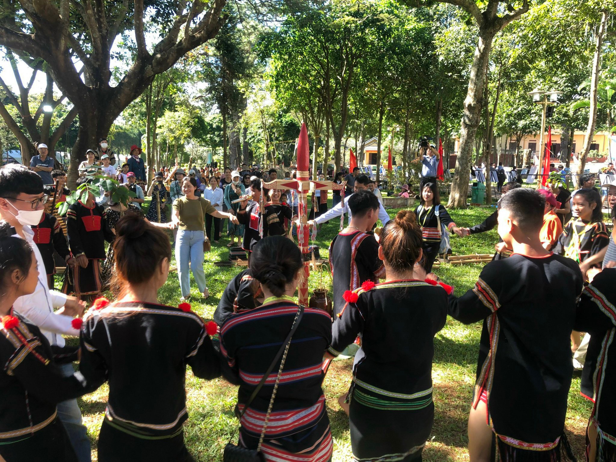Bên cạnh đó, đoàn nghệ nhân tỉnh đã tái hiện không gian sinh hoạt của các dân tộc thiểu số, trưng bày các sản phẩm thủ công truyền thống và tổ chức các hoạt động trải nghiệm, như: Đánh cồng chiêng, tạc tượng, dệt vải, đan lát..., nhằm tuyên truyền quảng bá, phục vụ nhu cầu giao lưu, tìm hiểu văn hoá truyền thống của dân tộc các dân tộc thiểu số phục vụ khách du lịch.