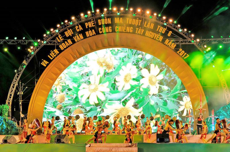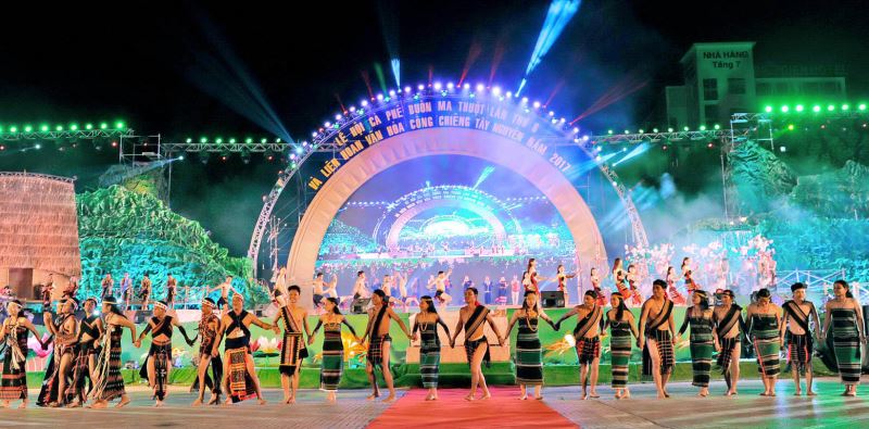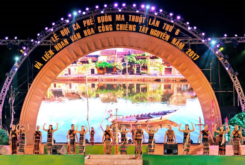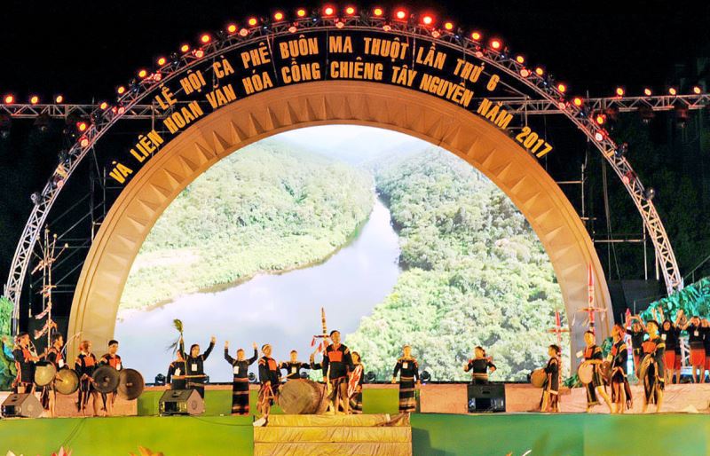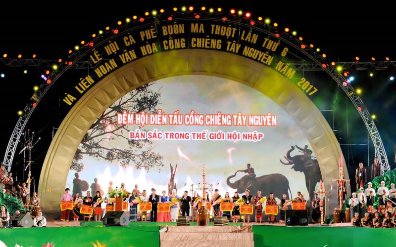 Hòa cùng không khí tưng bừng của Lễ hội Cà phê Buôn Ma Thuột lần thứ 6 và Liên hoan Văn hóa Cồng chiêng Tây Nguyên 2017, tối 11/3 tại Quảng trường Buôn Ma Thuột diễn ra Đêm hội diễn tấu cồng chiêng Tây Nguyên với chủ đề “Bản sắc trong thế giới hội nhập”.