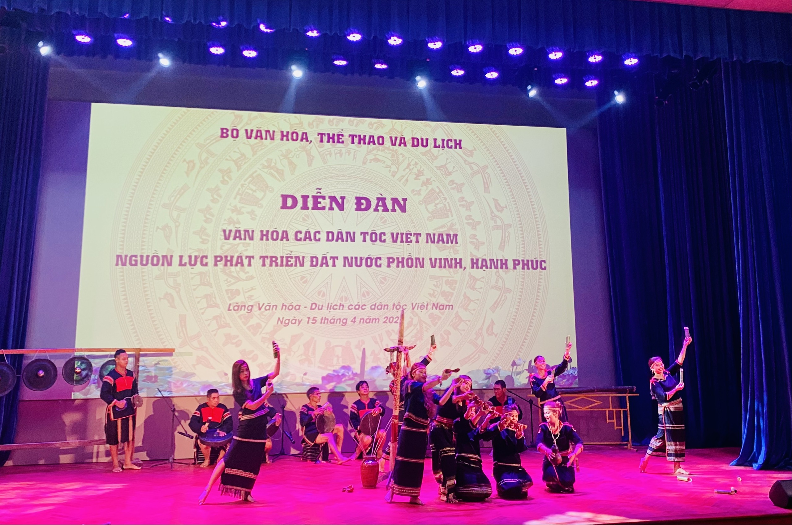 Đồng thời, nhóm nghệ nhân đã tham gia trình diễn cồng chiêng trong Diễn đàn văn hoá “Văn hoá các dân tộc Việt Nam - Nguồn lực phát triển đất nước phồn vinh, hạnh phúc”./.