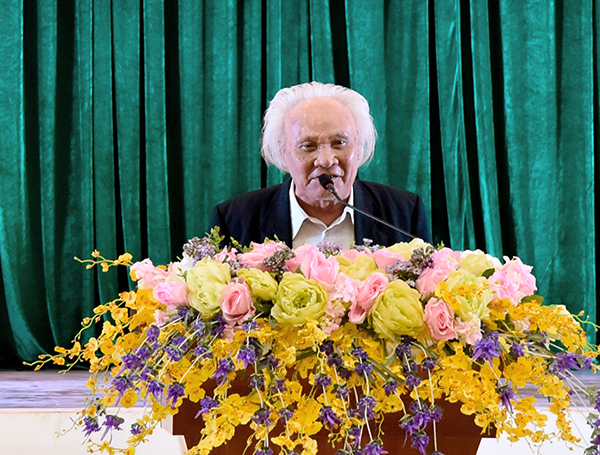 Nhà thơ Hữu Chỉnh phát biểu tại buổi gặp mặt