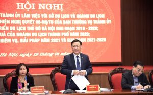 Phát biểu mở đầu cuộc làm việc, Bí thư Thành ủy Hà Nội Vương Đình Huệ cho biết, năm 2020, ngành du lịch Việt Nam chịu tác động và thiệt hại nặng nề. Riêng tại Hà Nội, năm 2020, khách quốc tế và nội địa sụt giảm mạnh khiến đóng góp của ngành du lịch vào tăng trưởng chung của Hà Nội chỉ còn hơn 3% (năm 2019 là hơn 12%).