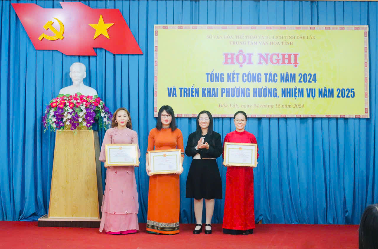 Nhân dịp này, có 05 cá nhân được tặng danh hiệu “Chiến sĩ thi đua cơ sở” vì có thành tích xuất sắc, tiêu biểu trong phong trào thi đua năm 2024; 03 tập thể và 15 cá nhân được tặng Giấy khen Giám đốc Sở VHTTDL đạt thành tích xuất sắc trong thực hiện nhiệm vụ công tác năm 2024./.