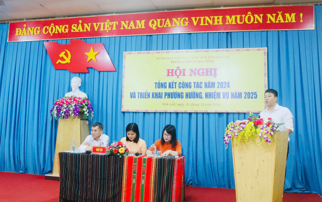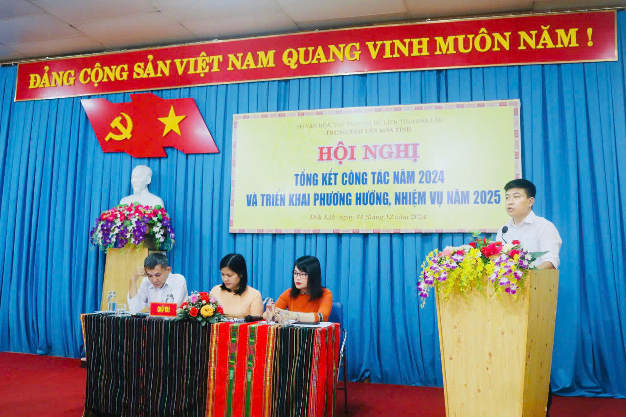Phát biểu tại Hội nghị, ông Lại Đức Đại, Phó Giám đốc Sở Văn hóa, Thể thao và Du lịch đánh giá cao những kết quả Trung tâm Văn hóa tỉnh đạt được trong năm 2024, tổ chức được nhiều chương trình, sự kiện, hoạt động, đáp ứng nhu cầu hưởng thụ văn hóa của Nhân dân. Đồng thời đề nghị đơn vị trong năm 2025 khắc phục những khó khăn về nhân sự, xây dựng một môi trường làm việc văn hóa; đổi mới nội dung, nâng cao chất lượng các hoạt động chuyên môn, biểu diễn văn hóa, văn nghệ…đảm bảo tuyên truyền đúng chủ trương, đường lối, của Đảng, chính sách, pháp luật của Nhà nước đến đông đảo quần chúng Nhân dân.