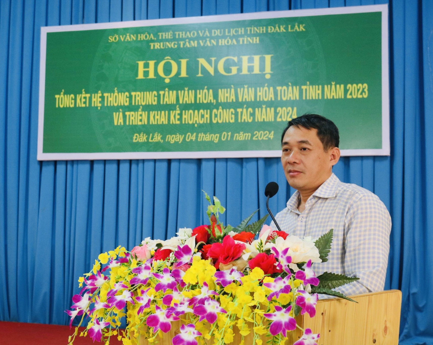 Chiều ngày 04/01/2024, Trung tâm Văn hóa tỉnh tổ chức hội nghị Tổng kết hệ thống Trung tâm Văn hóa, Nhà Văn hóa toàn tỉnh năm 2023 và triển khai kế hoạch công tác năm 2024. Ông Lại Đức Đại, Phó Giám đốc Sở Văn hóa, Thể thao và Du lịch đến dự và chỉ đạo hội nghị.