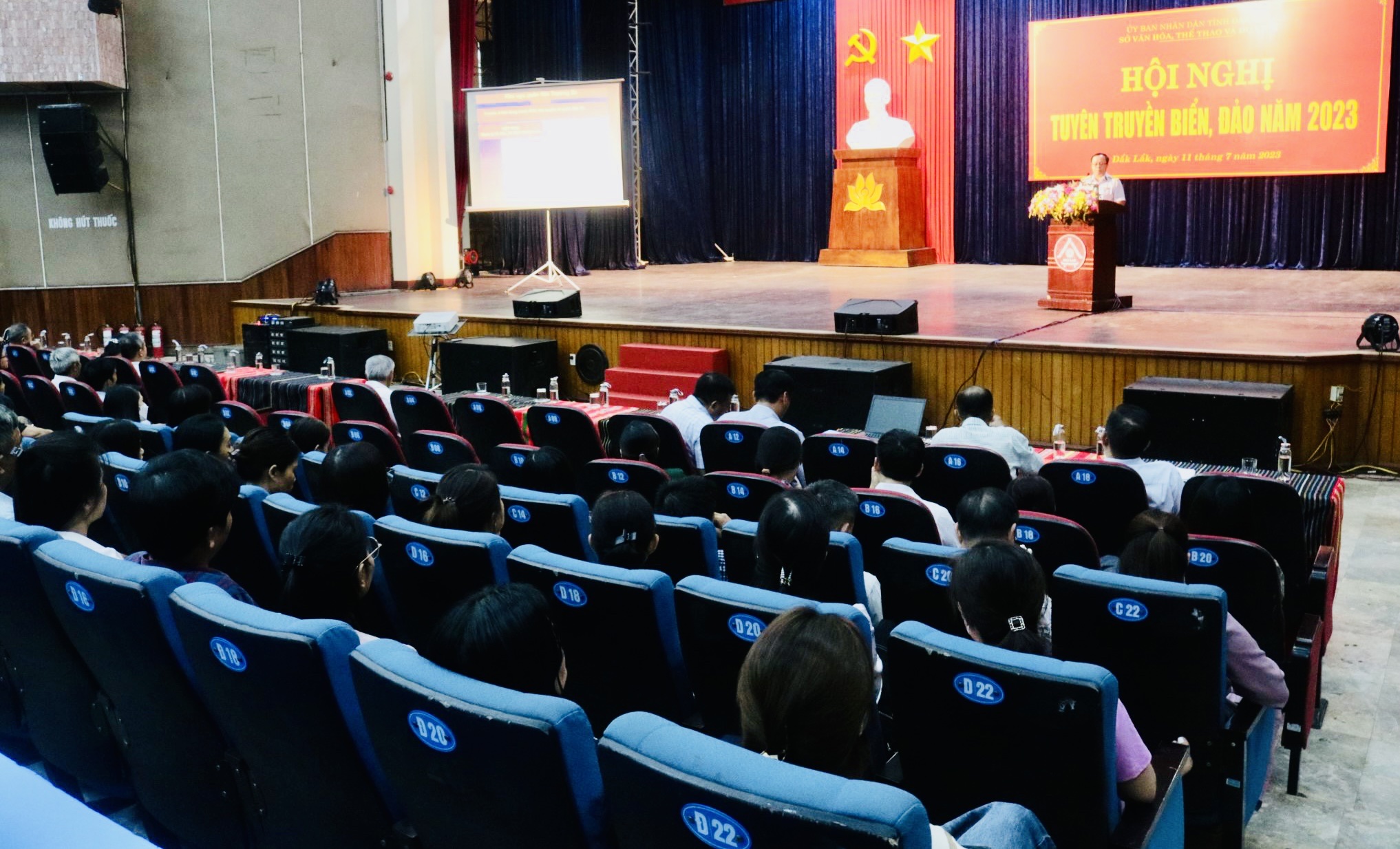 Chiều ngày 11/7/2023, Sở Văn hóa, Thể thao và Du lịch tỉnh Đắk Lắk tổ chức Hội nghị tuyên truyền biển, đảo năm 2023. Ban Giám đốc Sở; cán bộ, công chức, viên chức và người lao động trong toàn Ngành đã đến tham dự.
