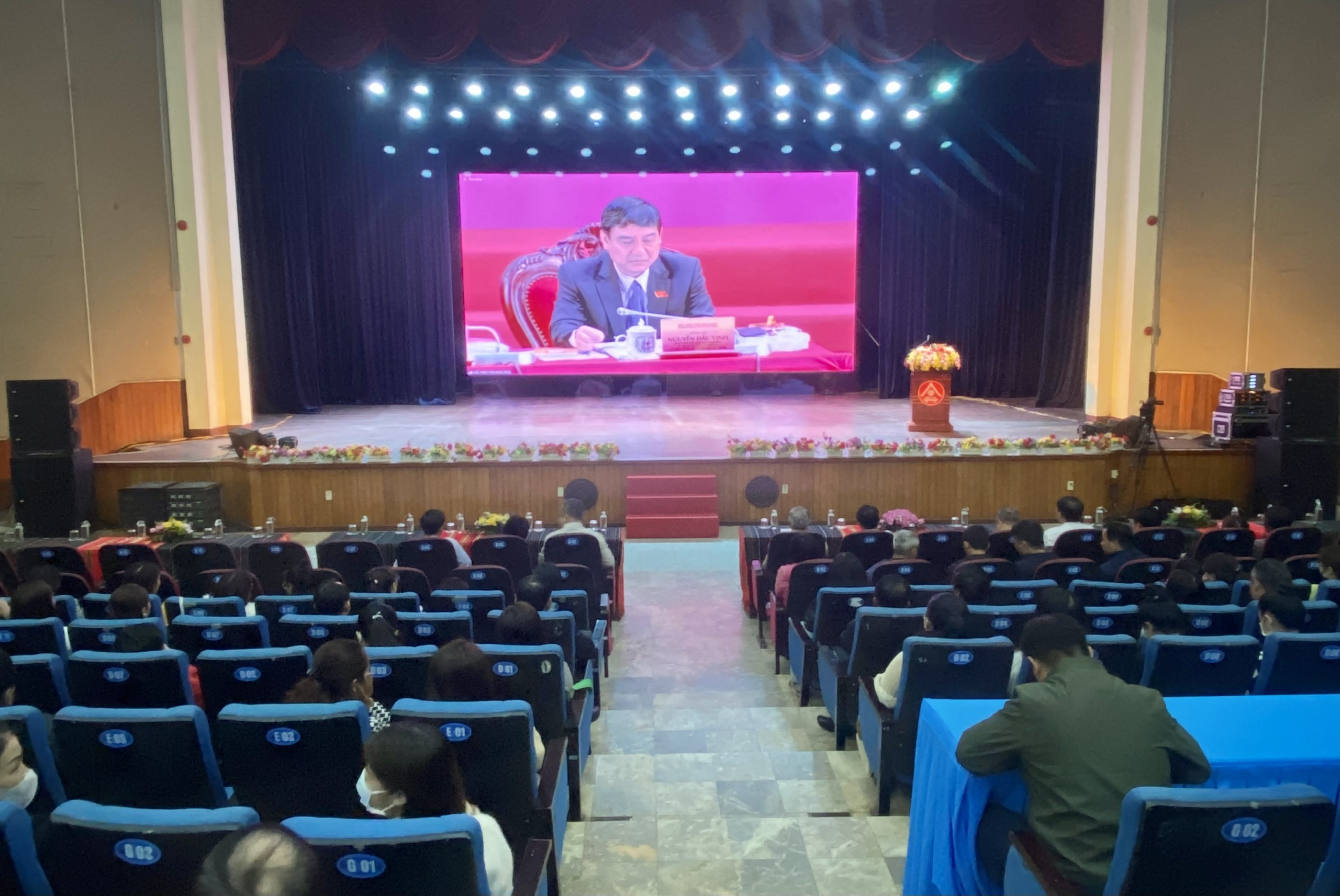 Một số hình ảnh công chức, viên chức, người lao động của Sở Văn hóa, Thể thao và Du lịch tỉnh Đắk Lắk tham dự trực truyến tại Hội trường Trung tâm Văn hóa tỉnh.