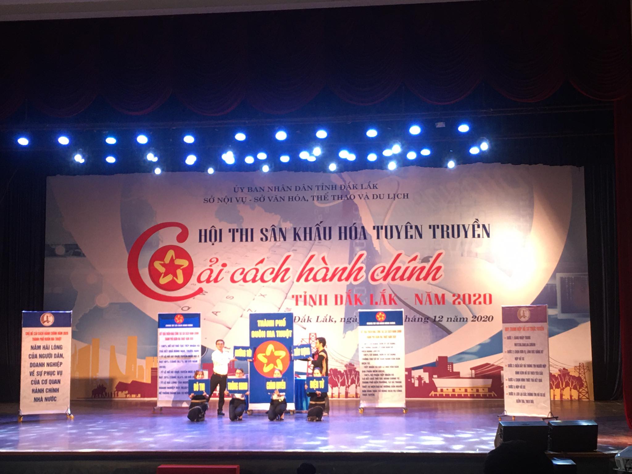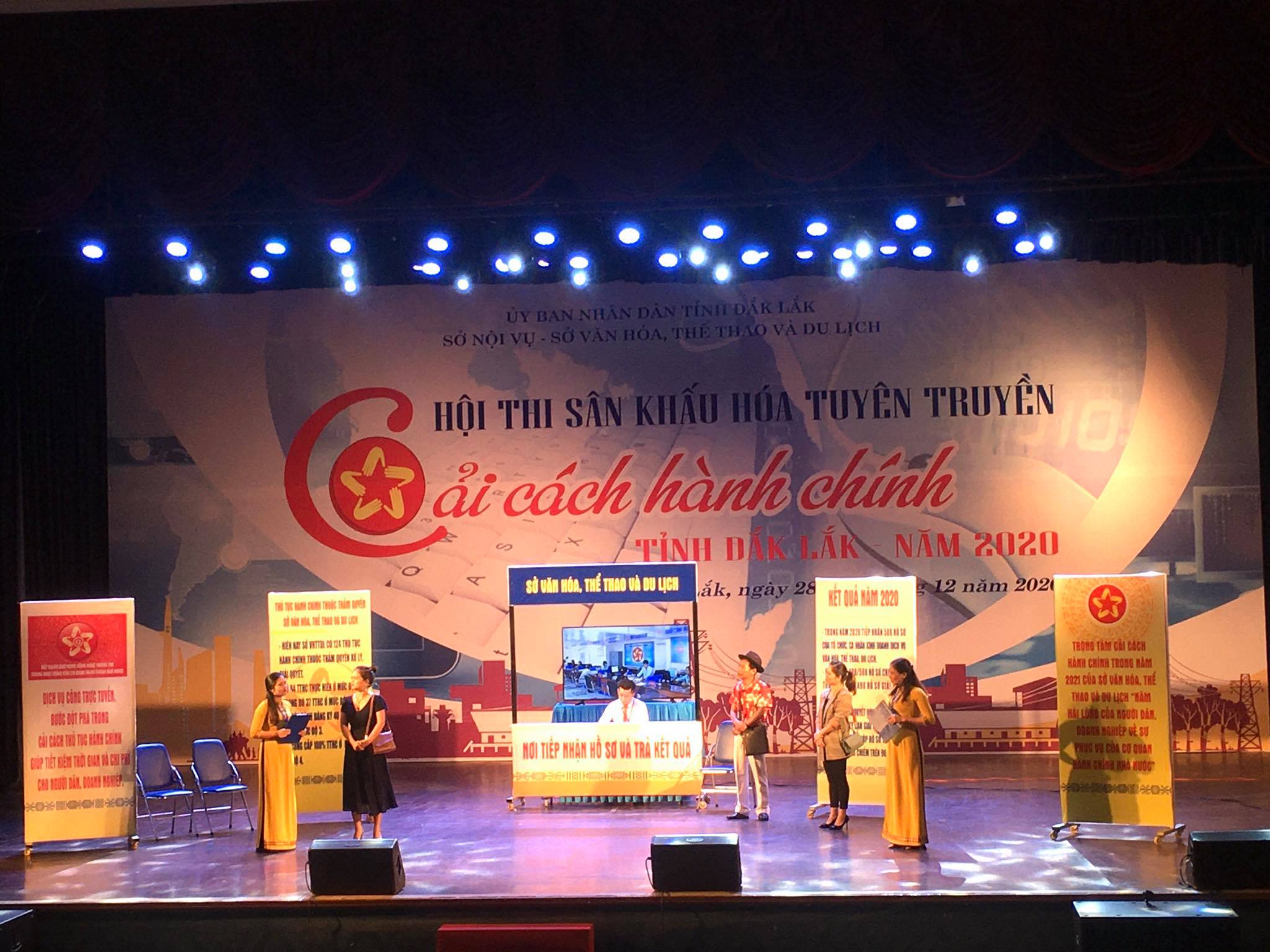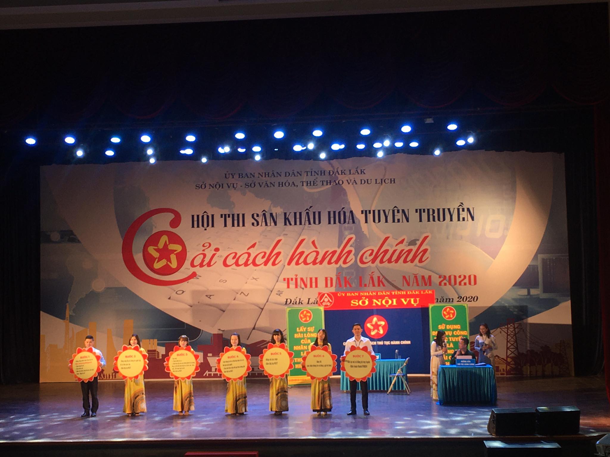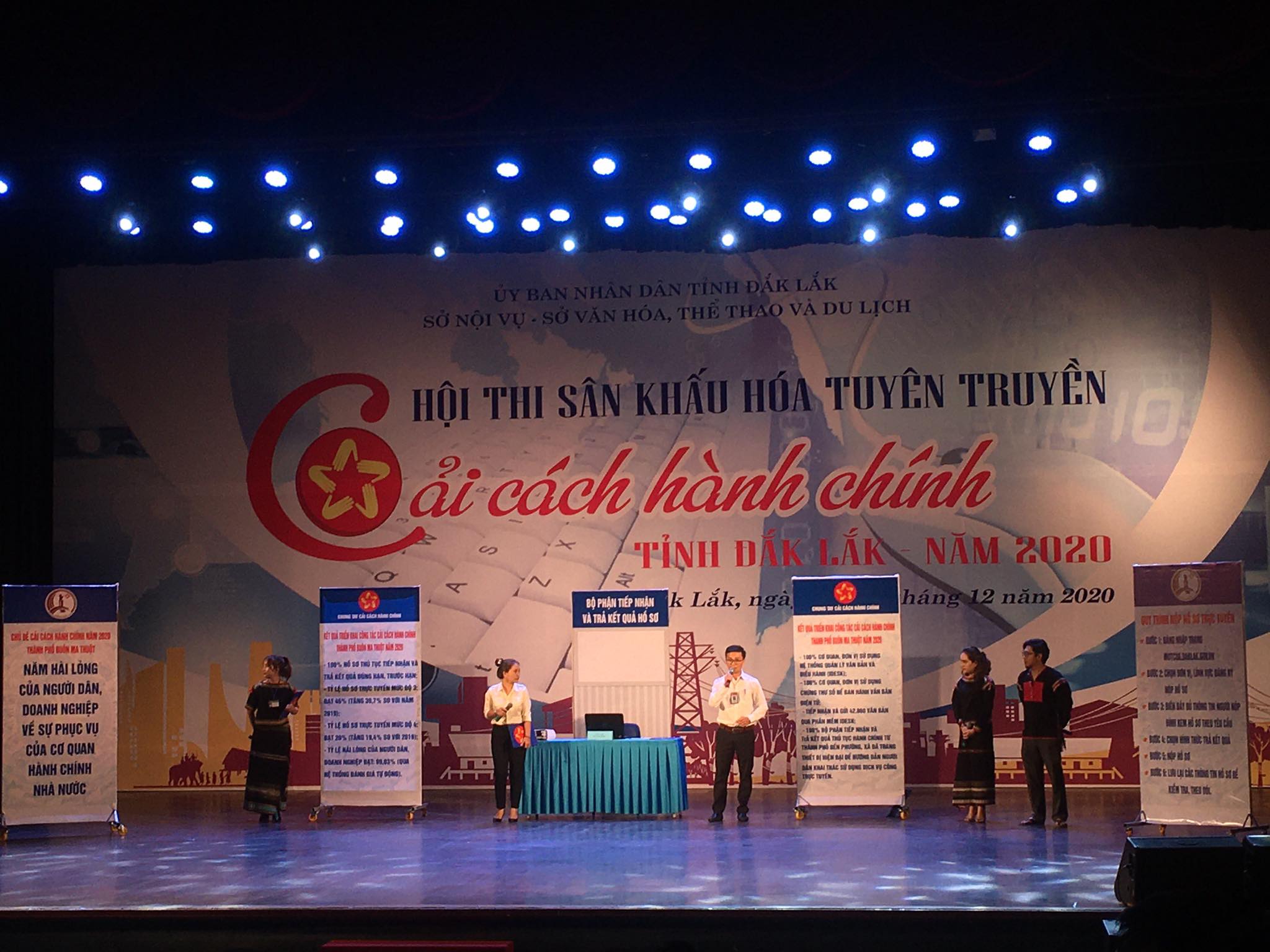 Hội thi sân khấu hóa tuyên truyền CCHC tỉnh Đắk Lắk – Năm 2020 do Sở Nội vụ - Sở Văn hóa, Thể thao và Du lịch phối hợp tổ chức. Hội thi có 25 Đội thi đến từ các sở, ngành và UBND các huyện, thị xã, thành phố trong tỉnh tham gia với hình thức tiểu phẩm sân khấu hóa. Chủ đề của Hội thi là các nội dung cải cách hành chính như: Xây dựng và tổ chức thực hiện văn bản quy phạm pháp luật; cải cách thủ tục hành chính và thực hiện cơ chế một cửa, một cửa liên thông; cải cách tổ chức bộ máy hành chính nhà nước, tinh giản biên chế; xây dựng và nâng cao chất lượng đội ngũ cán bộ, công chức, viên chức; cải cách tài chính công; hiện đại hóa hành chính, ứng dụng công nghệ thông tin, áp dụng ISO trong hoạt động hành chính…