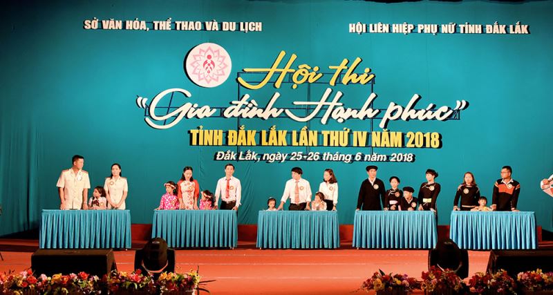 Sáng 25/6, tại Trung tâm Văn hóa tỉnh, Sở Văn hóa, Thể thao và Du lịch phối hợp Hội Liên hiệp Phụ nữ tỉnh tổ chức khai mạc Hội thi “Gia đình hạnh phúc” tỉnh Đắk Lắk lần thứ IV năm 2018. Tham dự Hội thi có 19 gia đình văn hóa tiêu biểu được lựa chọn từ các huyện, thị xã, thành phố và các cơ quan, ban, ngành của tỉnh sẽ cùng tranh tài ở các nội dung thi: giới thiệu, kiến thức, ứng xử và năng khiếu.