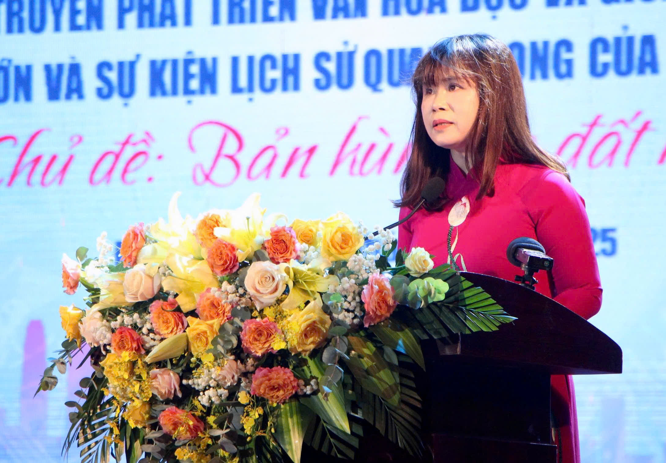 Bà Ninh Thị Thu Hương, Cục trưởng Cục Văn hóa cơ sở, Gia đình và Thư viện, Bộ Văn hóa, Thể thao và Du lịch, Trưởng Ban Tổ chức Liên hoan phát biếu