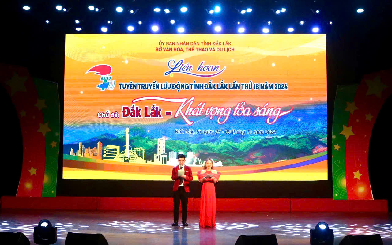 Liên hoan Tuyên truyền lưu động tỉnh Đắk Lắk lần thứ 18 năm 2024 với sự tham gia của 347 tuyên truyền viên, diễn viên, các hạt nhân văn nghệ chuyên và không chuyên đến từ 13 huyện, thị xã, thành phố trên địa bàn tỉnh sẽ đem đến cho chúng ta những chương trình tuyên truyền tổng hợp ca ngợi Đảng quang vinh, Bác Hồ vĩ đại, tình yêu quê hương đất nước, truyền thống đấu tranh anh dũng của Nhân dân ta dưới sự lãnh đạo của Đảng, những thành tựu trong xây dựng và phát triển kinh tế - xã hội, quốc phòng – an ninh, bảo vệ chủ quyền biển đảo, biên giới; đặc biệt thành tựu 120 năm tỉnh Đắk Lắk hình thành và phát triển, tinh thần đại đoàn kết toàn dân tộc của 49 dân tộc anh em đang sinh sống trên vùng đất Đắk Lắk hùng vĩ này .