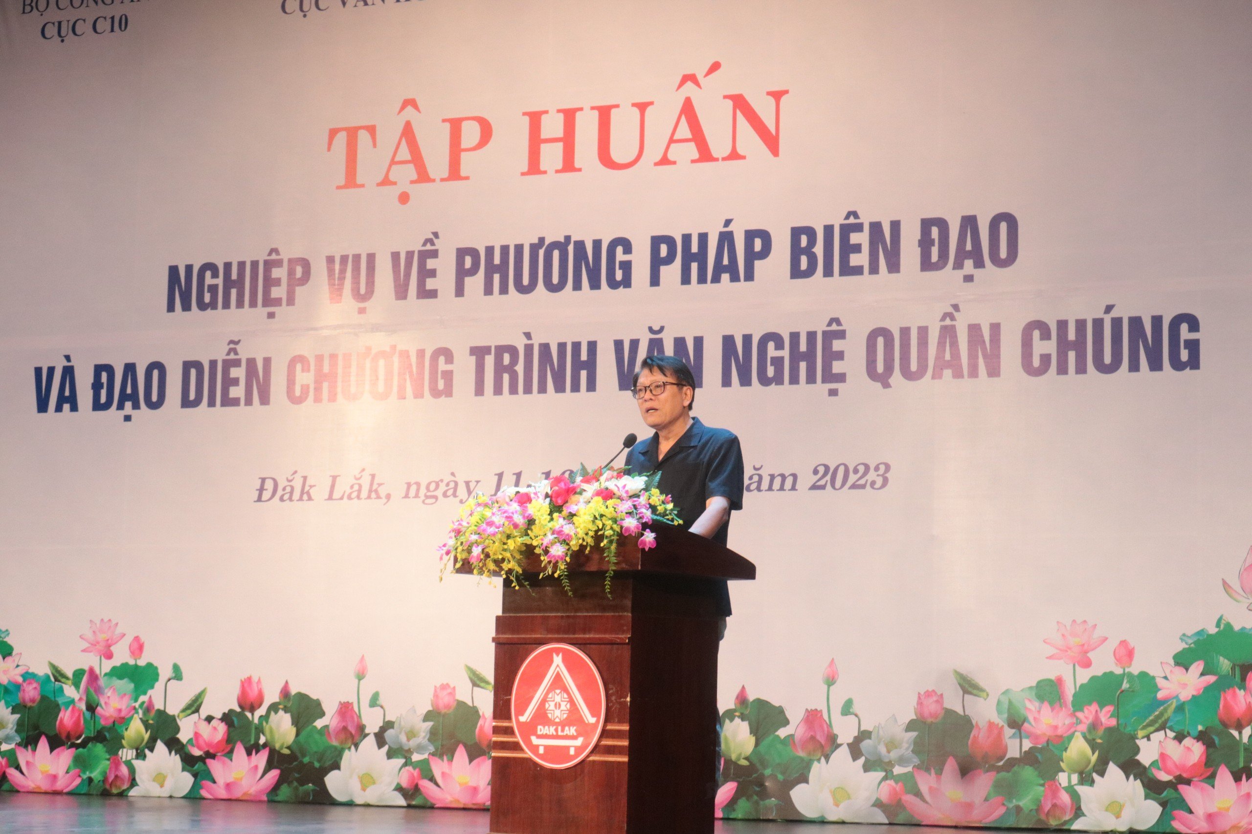 Từ ngày 11/9 đến 16/9/2023, tại Trung tâm Văn hóa tỉnh Đắk Lắk, Cục Văn hóa cơ sở, Bộ Văn hóa, Thể thao và Du lịch phối hợp với Cục C10, Bộ Công an và Sở Văn hóa, Thể thao và Du lịch tỉnh Đắk Lắk tổ chức Lớp tập huấn nghiệp vụ về phương pháp biên đạo và đạo diễn chương trình văn nghệ quần chúng cho gần 200 học viên là cán bộ làm công tác nghiệp vụ biên đạo, đạo diễn trong hệ thống Trung tâm Văn hóa, Trung tâm Văn hóa - Nghệ thuật, Trung tâm Văn hóa - Điện ảnh các tỉnh, thành phố toàn quốc và cán bộ làm công tác văn hóa, văn nghệ quần chúng tại các trại giam, trại tạm giam, cơ sở giáo dục bắt buộc, trường giáo dưỡng trực thuộc Cục C10 - Bộ Công an. Về dự Lễ khai giảng có bà Vi Thanh Hoài, Cục phó Cục Văn hóa cơ sở, Bộ Văn hóa, Thể thao và Du lịch; Thượng tá Phạm Đức Tài, Phó Trưởng phòng 11, Cục C10, Bộ Công an; ông Lại Đức Đại, Phó Giám đốc Sở Văn hóa, Thể thao và Du lịch tỉnh Đắk Lắk.