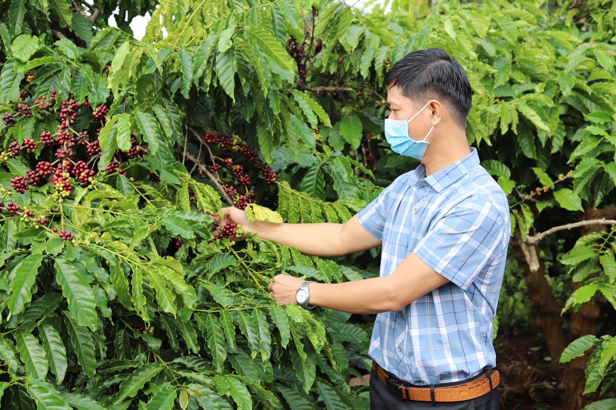 Trải nghiệm của đại biểu khi trực tiếp hái cà phê chín tại vườn cà phê hữu cơ.