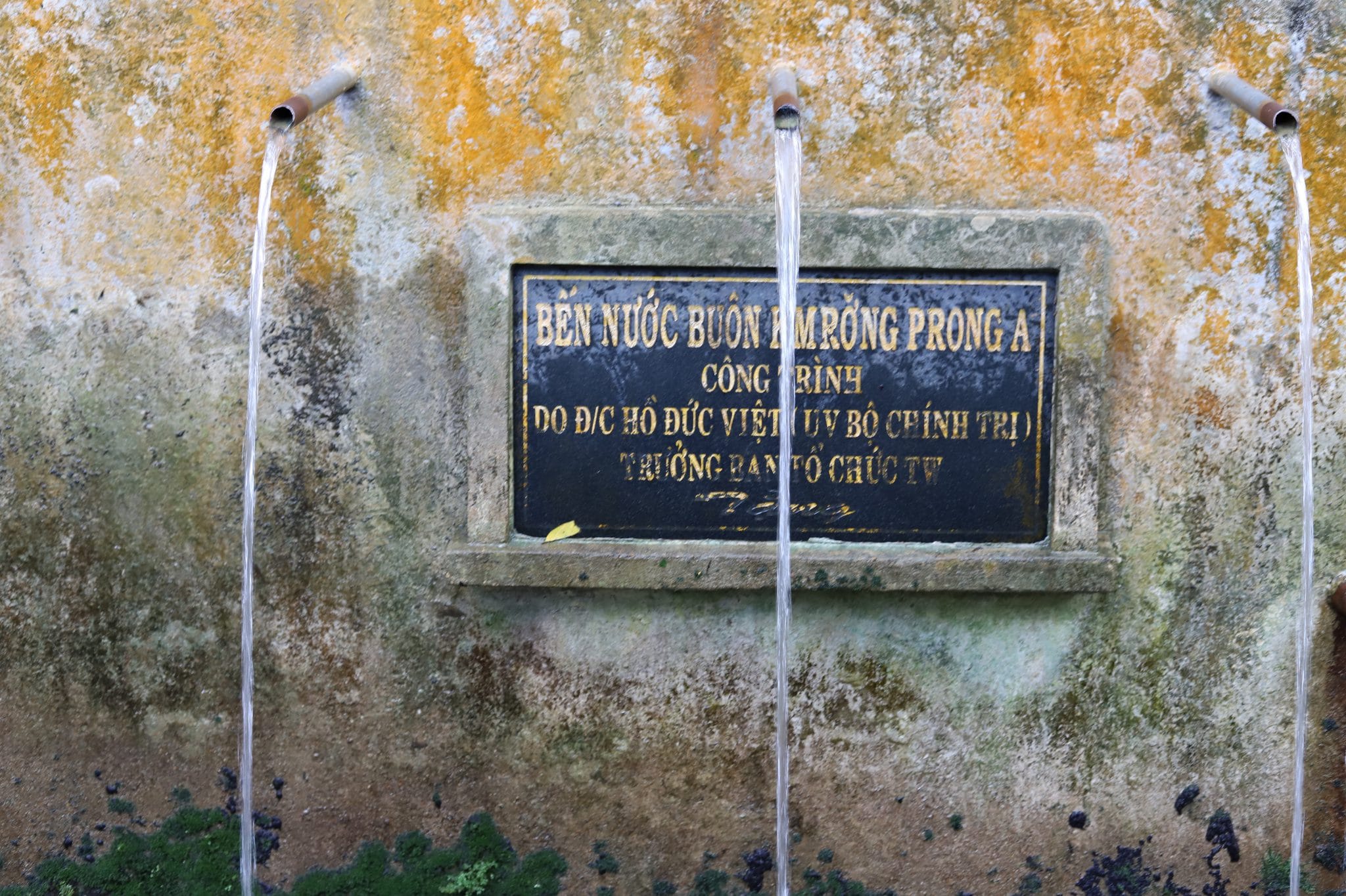 Hành trình cuối cùng của đoàn là ghé Nhà dài, bến nước của Bà Sơ Rian tại buôn Kmrơng Prông A, xã Ea Tu.
