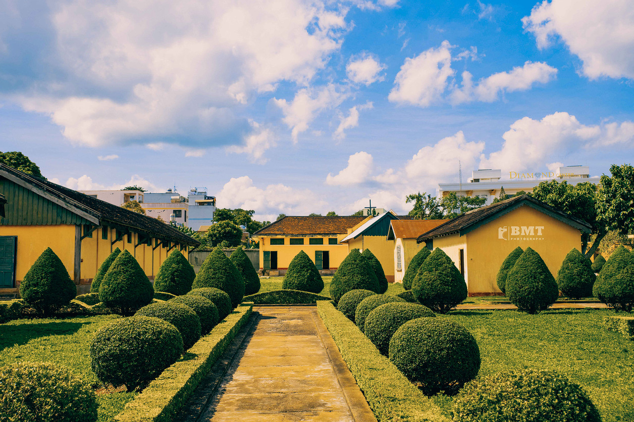 Nhà đày Buôn Ma Thuột khoác trên mình một màu vàng hoài niệm, nhuốm màu thời gian. Lối vào nhà đày được quét dọn sạch sẽ, tô sơn lại khang trang, hai bên lối đi là những hàng cây xanh được cắt tỉa gọn gàng.