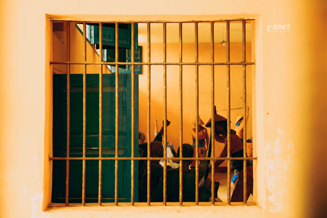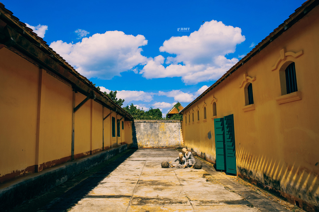 "Hôm đó là một ngày đẹp trời cuối tháng 8, đoàn thanh niên của một số tỉnh đến thắp hương tưởng niệm vong linh các anh hùng tại nhà đày. Dù những ngày trước đó vẫn mưa dai dẳng nhưng hôm mình đến thì trời lại đẹp lạ thường. Mình quyết định chụp lại một bộ ảnh về nhà đày để chia sẻ tới du khách thập phương, nhất là các bạn trẻ”, Quốc Bảo chia sẻ.