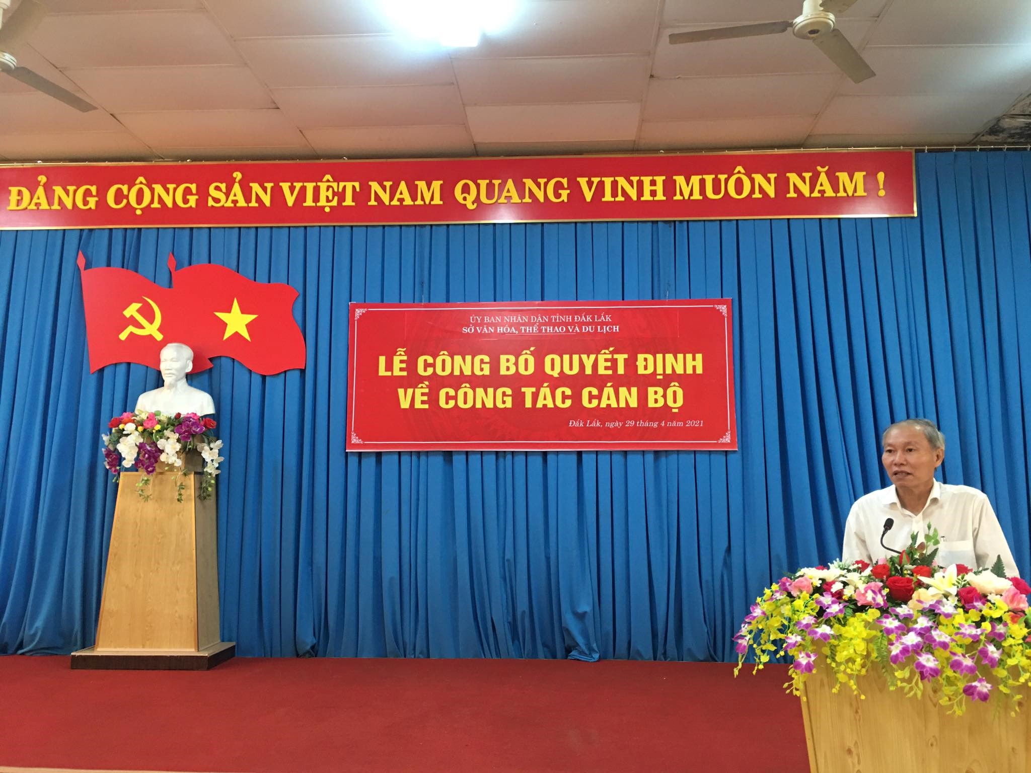 Tại buổi lễ, bà Nguyễn Thị Phương Thúy Trưởng phòng Tổ chức - Pháp chế đã công bố Quyết định bổ nhiệm bà Trương Thị Ánh, Phó Chánh Văn phòng Sở Văn hóa, Thể thao và Du lịch đến nhận công tác tại Trung tâm Văn hóa tỉnh và giữ chức vụ Giám đốc Trung tâm Văn hóa tỉnh; thời gian giữ chức vụ là 05 năm kể từ ngày 04 tháng 5 năm 2021.