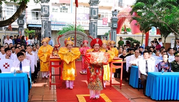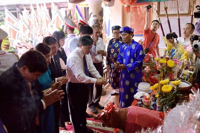 | Thực hiện nghi thức Tế truyền thống. Ảnh: Hữu Hùng |