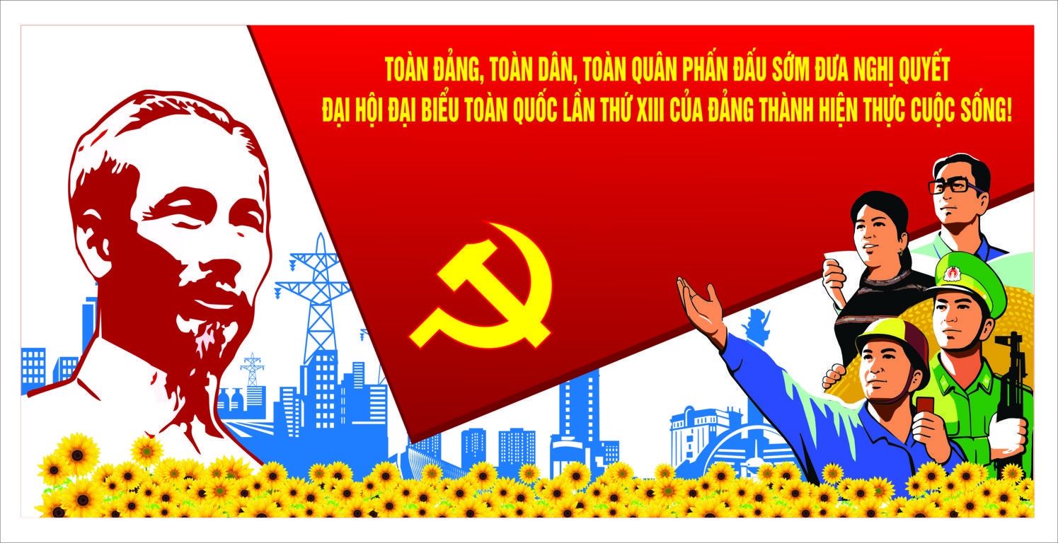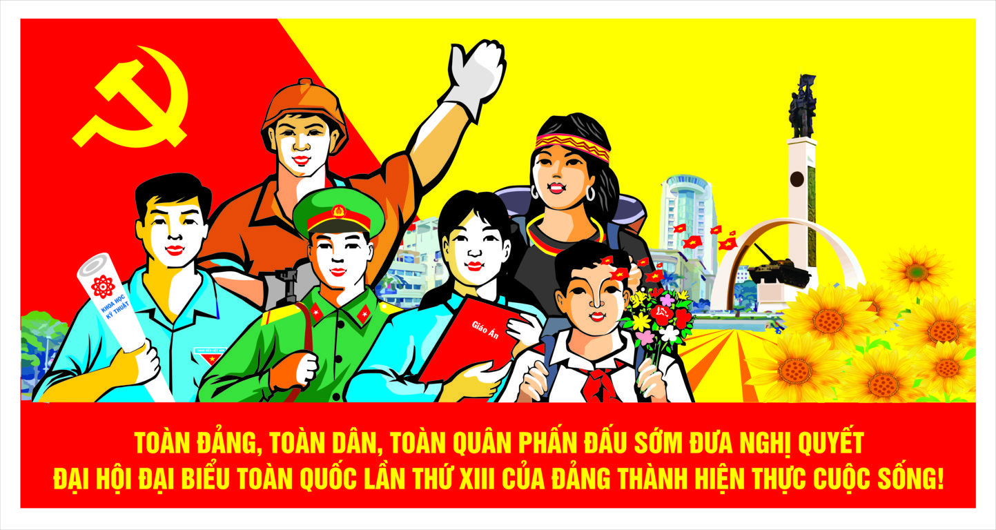 Mẫu tranh cổ động Tuyên truyền sau Đại hội đại biểu Đảng bộ tỉnh lần thứ XVII và Đại hội đại biểu toàn quốc lần thứ XIII của Đảng