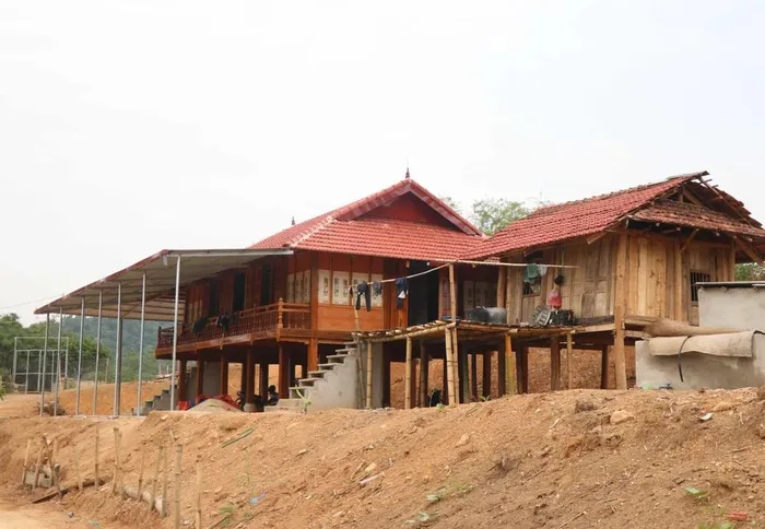 Nhiều ngôi nhà sàn mới được dựng trên địa bàn bản Sáng,xã Pá Khoang, thành phố Điện Biên Phủ, tỉnh Điện Biên. (Ảnh: Xuân Tiến/TTXVN)