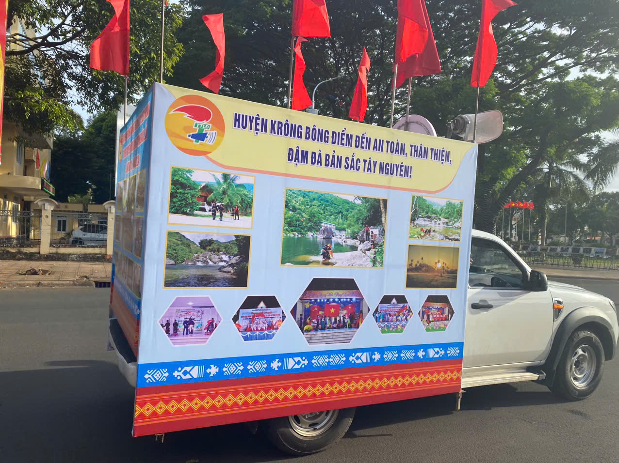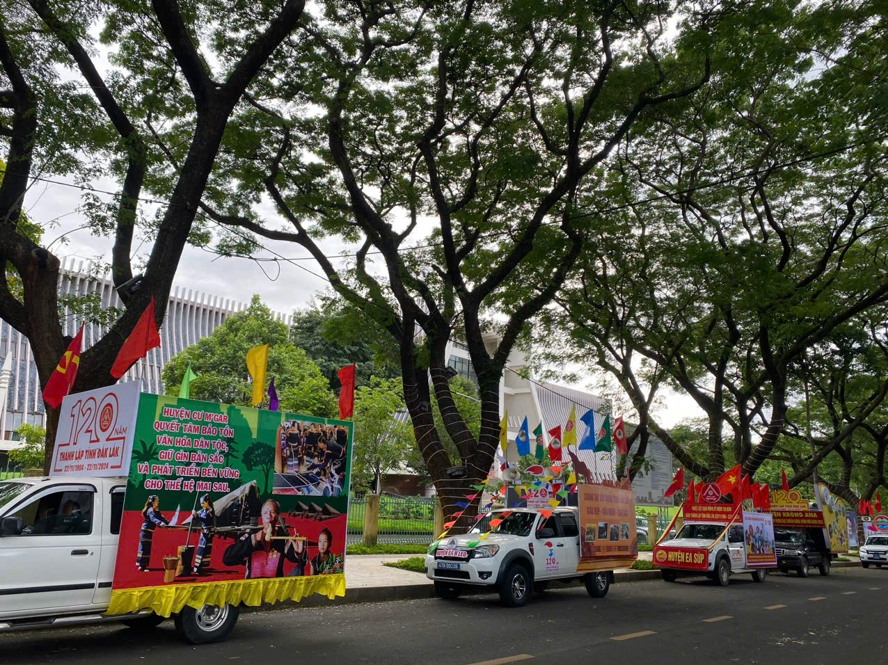 Phần thi Diễu hành Xe tuyên truyền trong Liên hoan Tuyên truyền Lưu động tỉnh Đắk Lắk lần thứ 18 năm 2024, với chủ đề “Đắk Lắk – Khát vọng tỏa sáng”