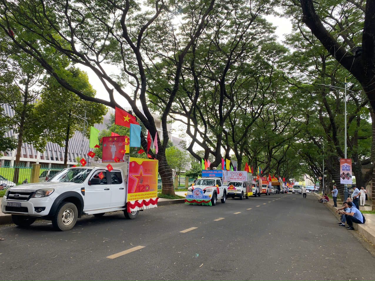 Các xe tuyên truyền lưu động của 13 đơn vị được trang trí rực rỡ, sử dụng hình ảnh cổ động trực quan, cờ hoa kèm theo các khẩu hiệu ngắn gọn, cơ động và hiệu quả tuyên truyền cao khi tham gia diễu hành.