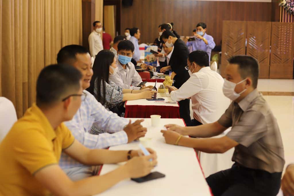 Các lãnh đạo doanh nghiệp trao đổi thông tin trước khi vào hội nghị