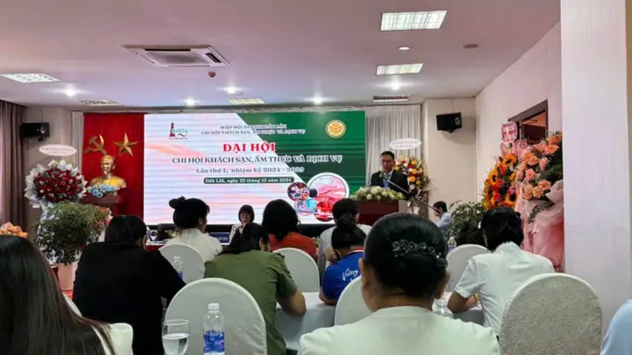 Ngày 25.10.2024, tại Khách sạn Dakruco, Đại hội lần thứ I, nhiệm kỳ 2024-2029 của Chi hội Khách sạn, Ẩm thực và Dịch vụ Đắk Lắk đã chính thức diễn ra. Đây là dịp để các đơn vị trong ngành hội tụ, chia sẻ tầm nhìn, nâng cao chất lượng dịch vụ và hợp tác phát triển.