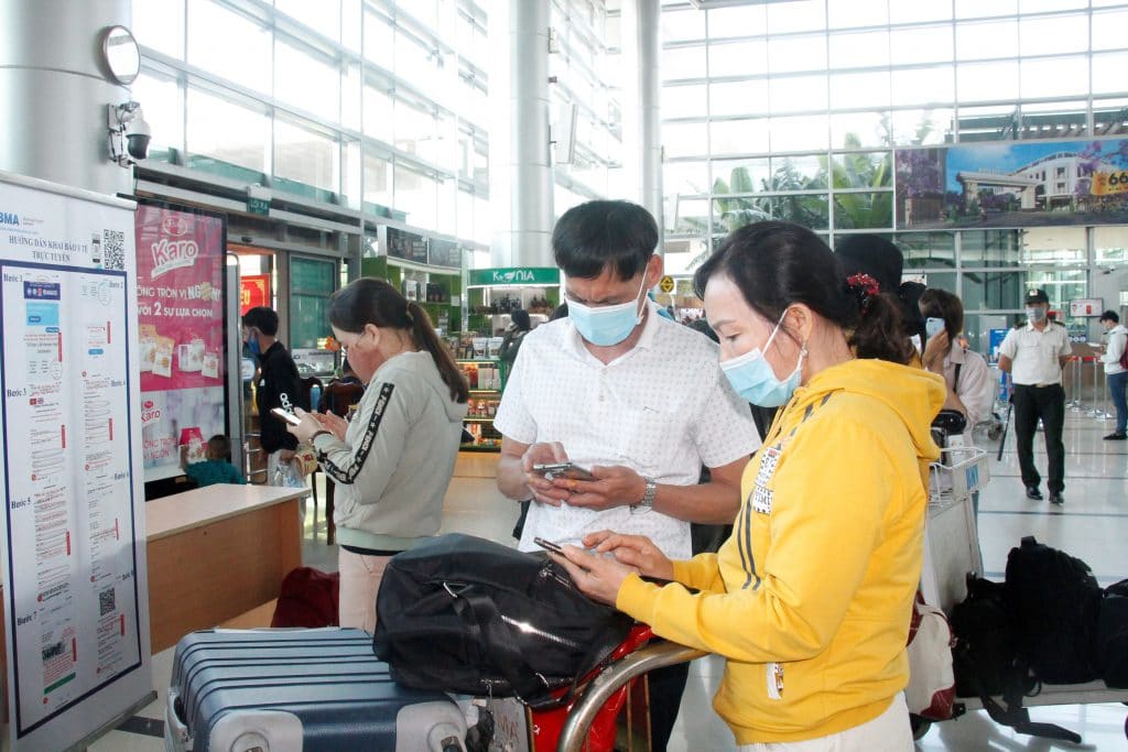 | Hành khách khai báo y tế tại khu vực nhà ga Cảng hàng không Buôn Ma Thuột. |