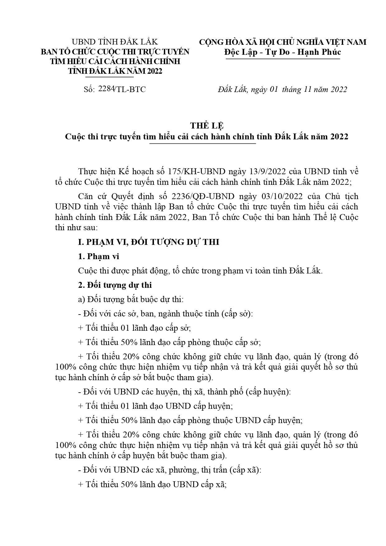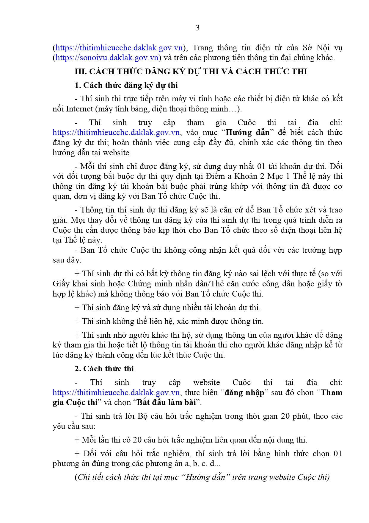 Thể lệ Cuộc thi trực tuyến tìm hiểu cải cách hành chính tỉnh Đắk Lắk năm 2022