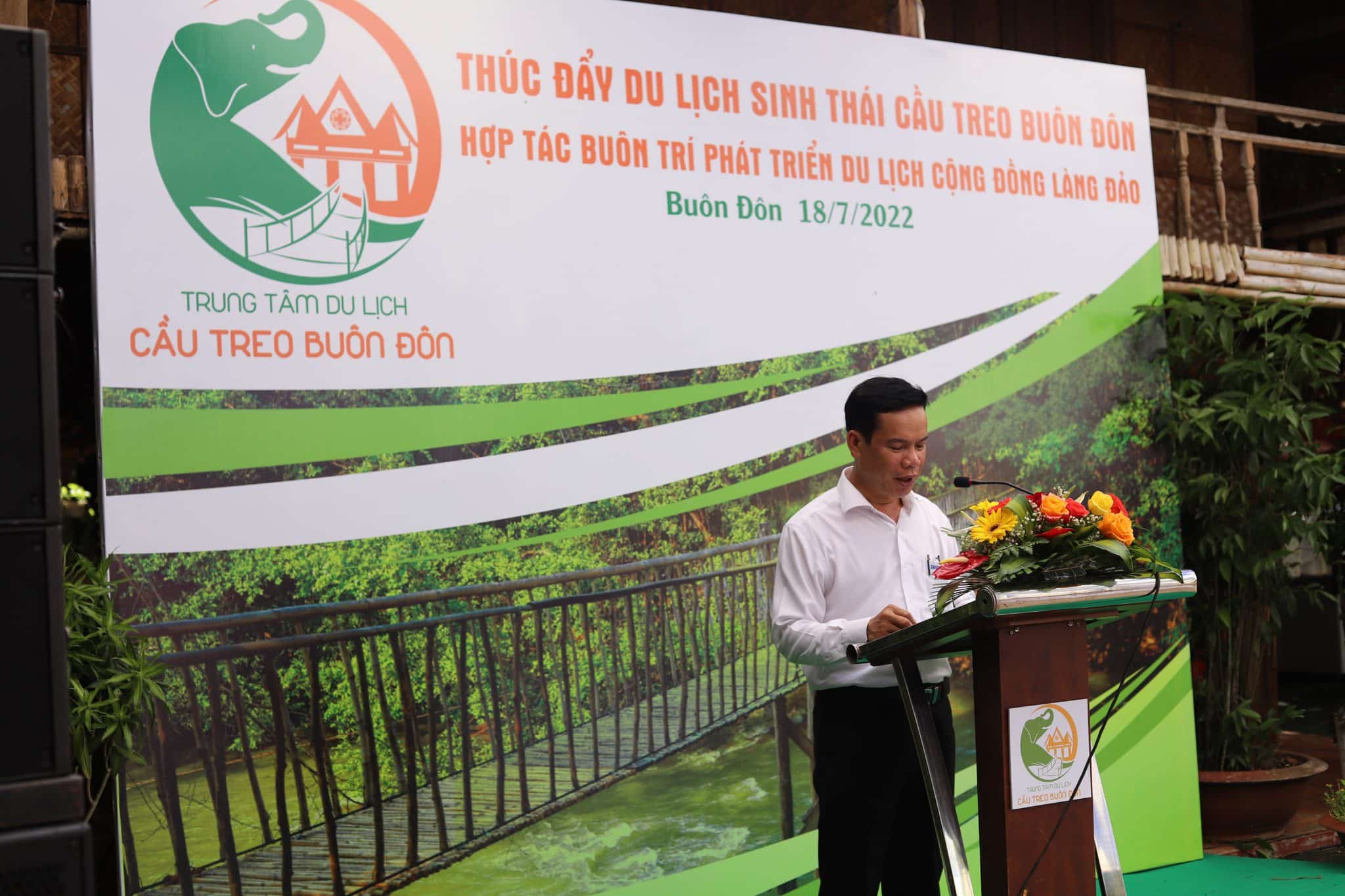 Ông Nguyễn Đức, đại diện Trung tâm đã trình bày về định hướng phát triển mới của Trung tâm du lịch Cầu treo Buôn Đôn gắn liền với Phát triển Du lịch Cộng đồng Làng Đảo tại Buôn Trí.